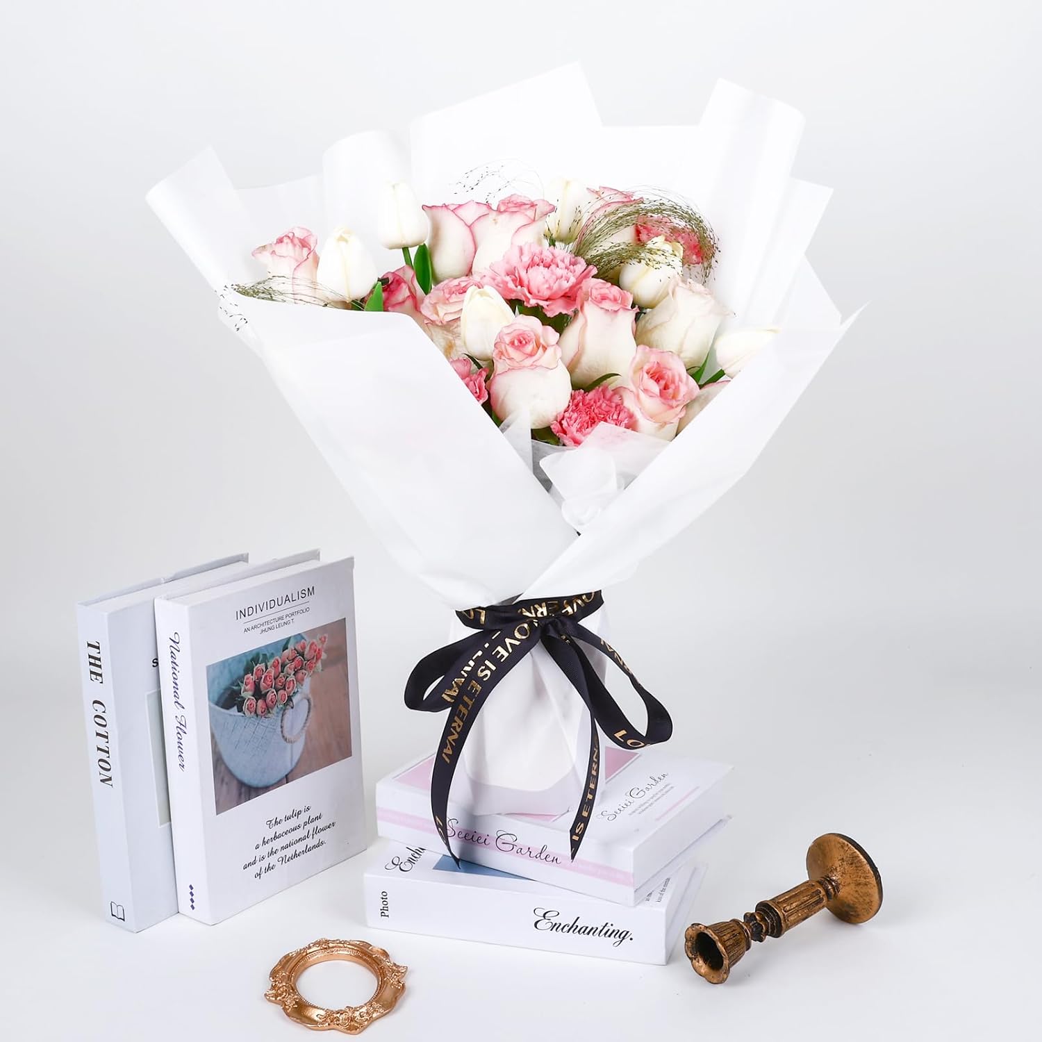 - 【Elegant Design】Classic pure white design,new and charming color lines make the whole bunch of flowers full of fashion design.smooth and comfortable to touch,makes wrapping paper more noble.