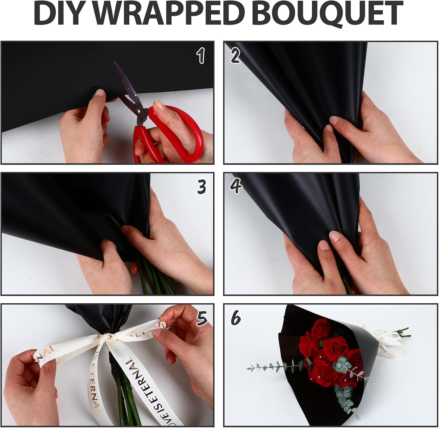 - 【Elegant Design】Classic pure black design,new and charming color lines make the whole bunch of flowers full of fashion design.smooth and comfortable to touch,makes wrapping paper more noble.