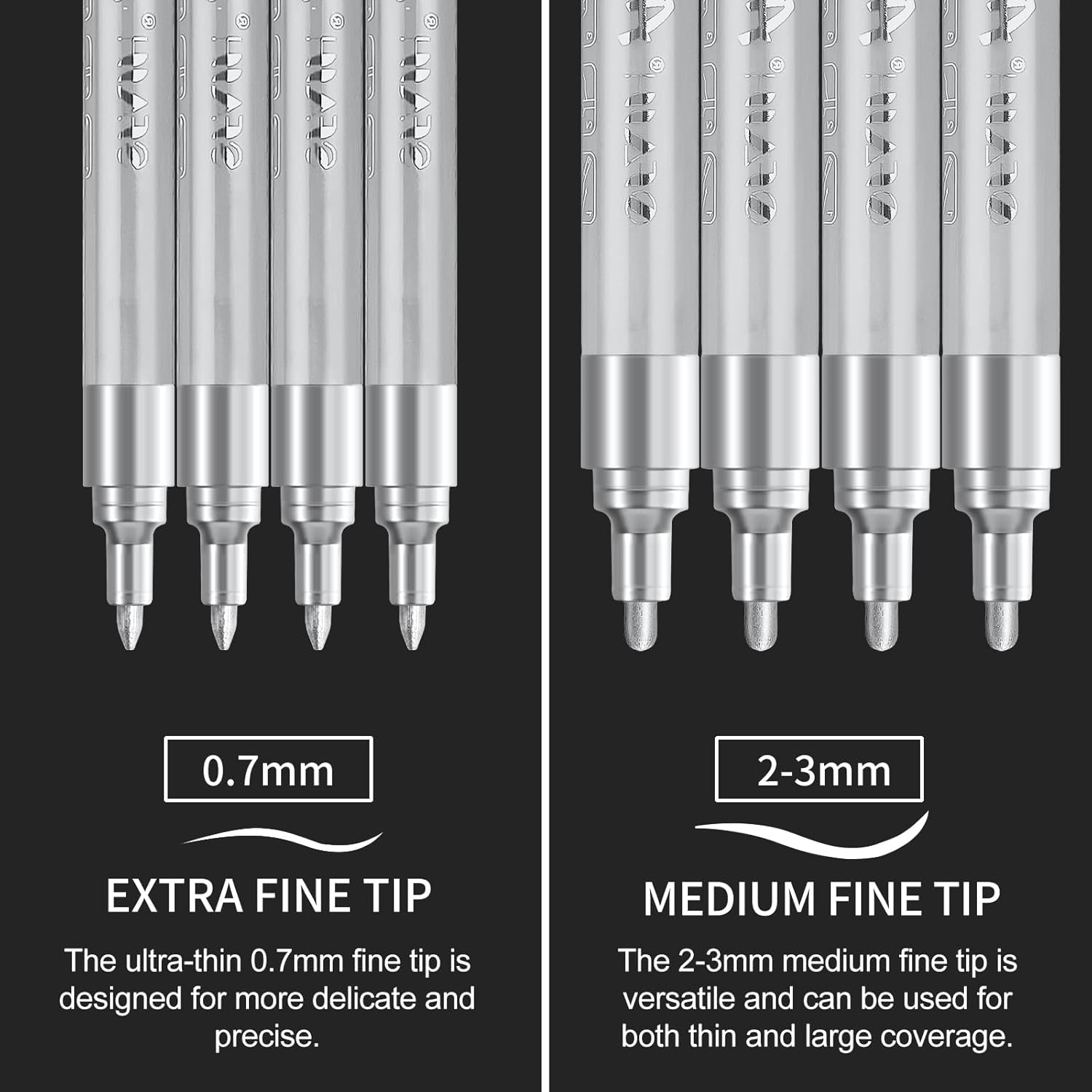 SFAIH Acrylic Silver Paint Pens - 8 Pack 2-3MM Medium Tip & 0.7MM Extra Fine White Paint Marker for Rock Painting, Wood, Metal, Fabric, Canvas, Glass, Ceramic, Diy Crafts