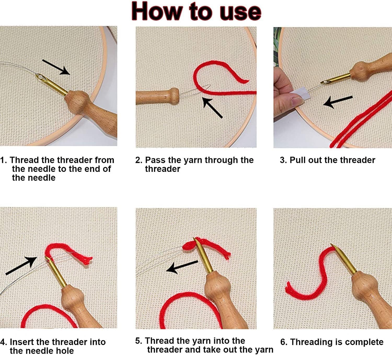 - 【Beginner-Friendly Design】Simply thread the yarn through the punch needle to the top of the pen, then guide it through the needle hole using the included threader. Easy and quick to use, even beginners can master it swiftly.