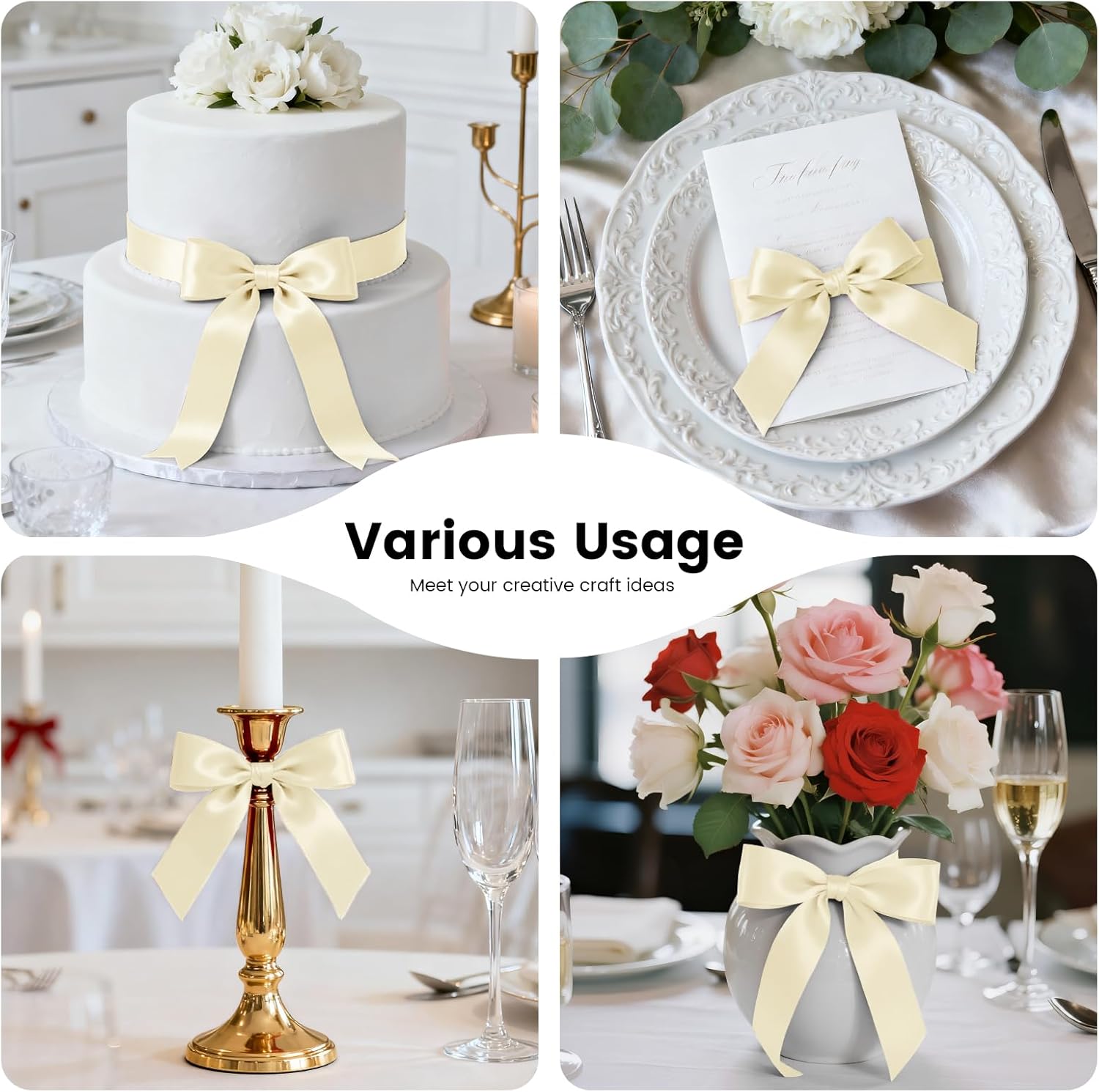 - 【Versatile Ribbon】: The polyester gift wrap ribbon with nice stitched edges looks luxurious and is suitable for gift wrapping, presents, packages, crafts making, tying bows, hair, sewing, floral wreath and bouquet, scrap booking, invitation or thank you cards, DIY projects, graduation lei. The wrapping ribbon can surely highlight your items and add an exquisite touch.