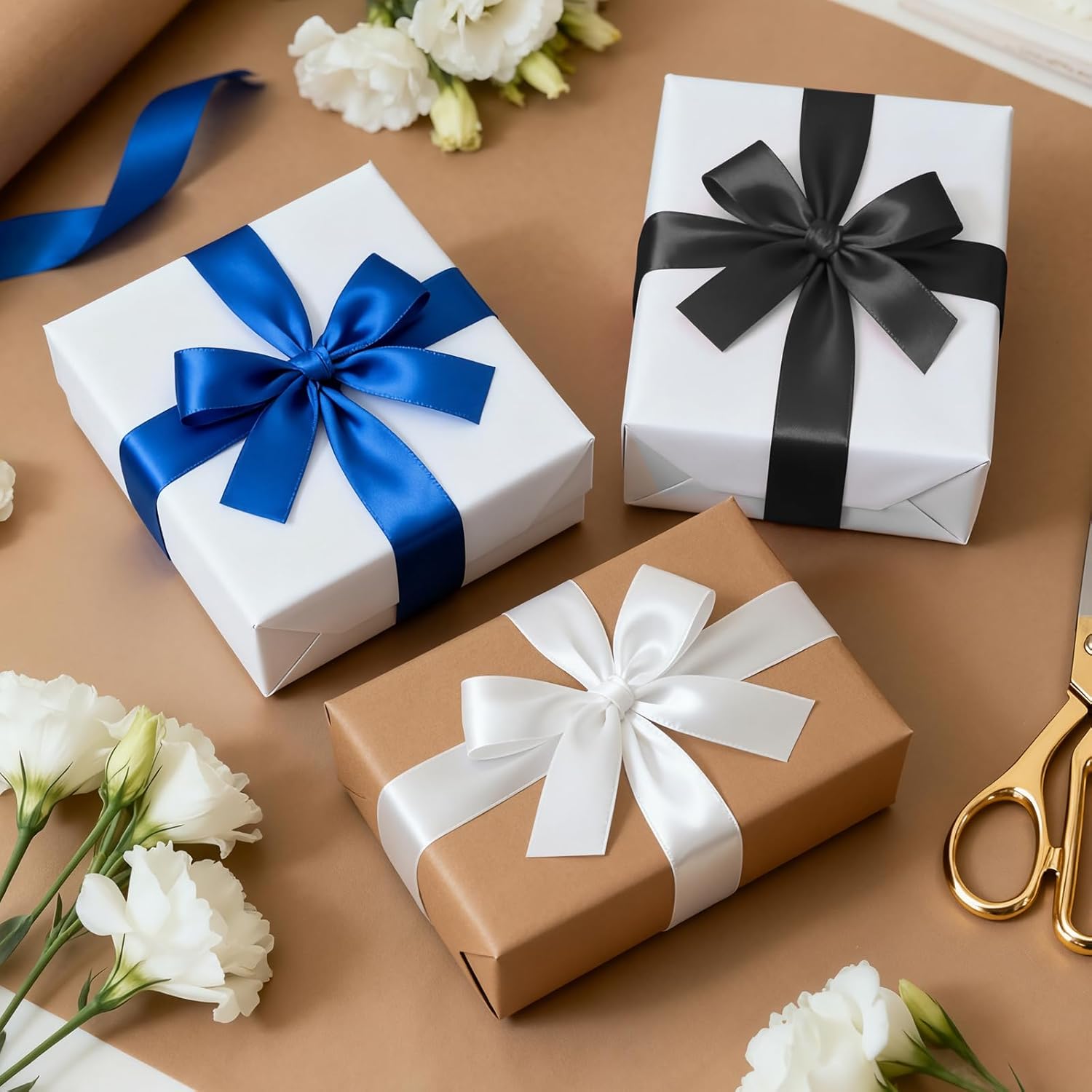 - 【Versatile Ribbon】: The polyester gift wrap ribbon with nice stitched edges looks luxurious and is suitable for gift wrapping, presents, packages, crafts making, tying bows, hair, sewing, floral wreath and bouquet, scrap booking, invitation or thank you cards, DIY projects, graduation lei. The wrapping ribbon can surely highlight your items and add an exquisite touch.