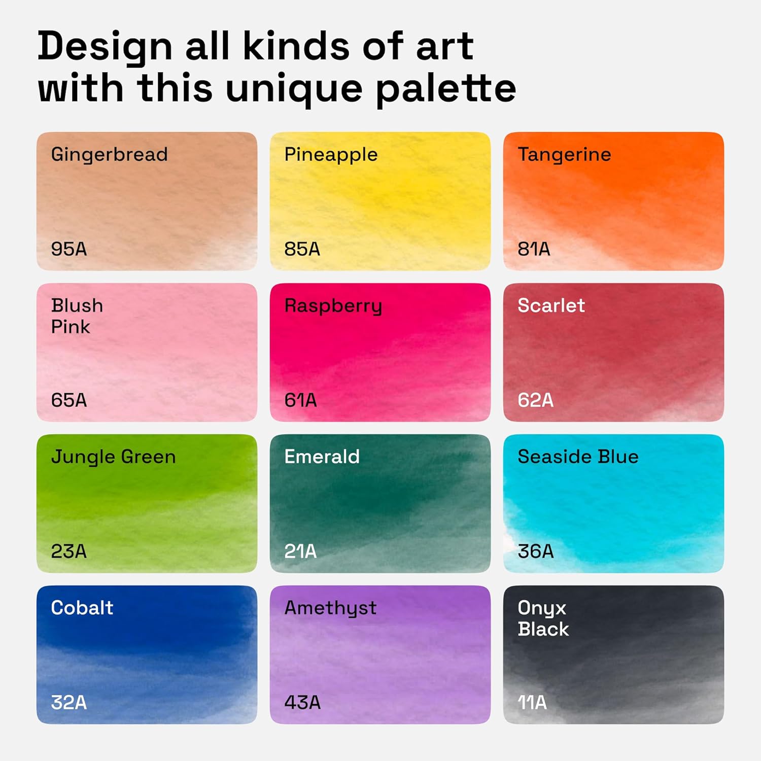 ARTISTRO 12 Watercolor Markers with Flexible Paint Brush Pens for Pros & Beginners - Consistent, Smooth, Bright, Washable, Non-Toxic, Ideal for Coloring, Calligraphy, & Manga