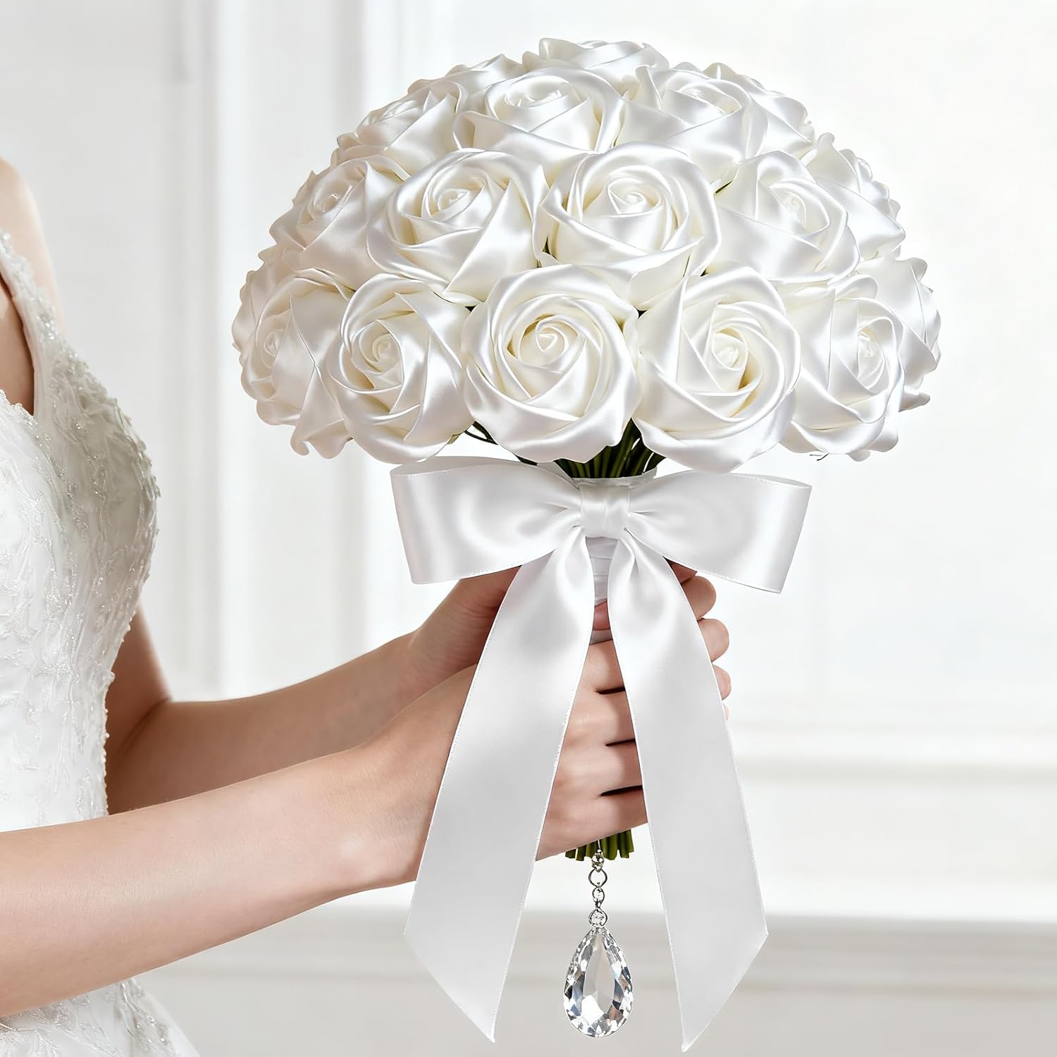 1" x 25 Yards Satin Ribbon, White Silk Ribbon Ideal for Gift Wrapping, Floral Bouquets, Crafts, Wedding Party Decorations, Christmas and Sewing Projects