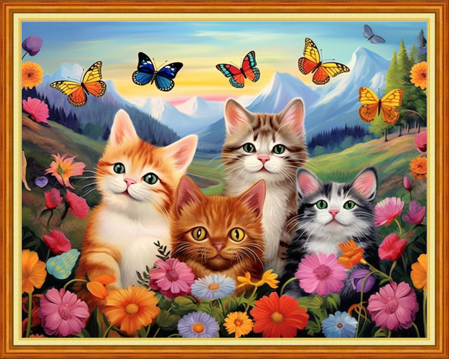 DMCVIVR Stamped Cross Stitch Kits for Adults Beginners Embroidery Kits 11CT Needlepoint Kits Cross Stitch Patterns Embroidery Patterns-Family of Cute Cats 16x20 inch