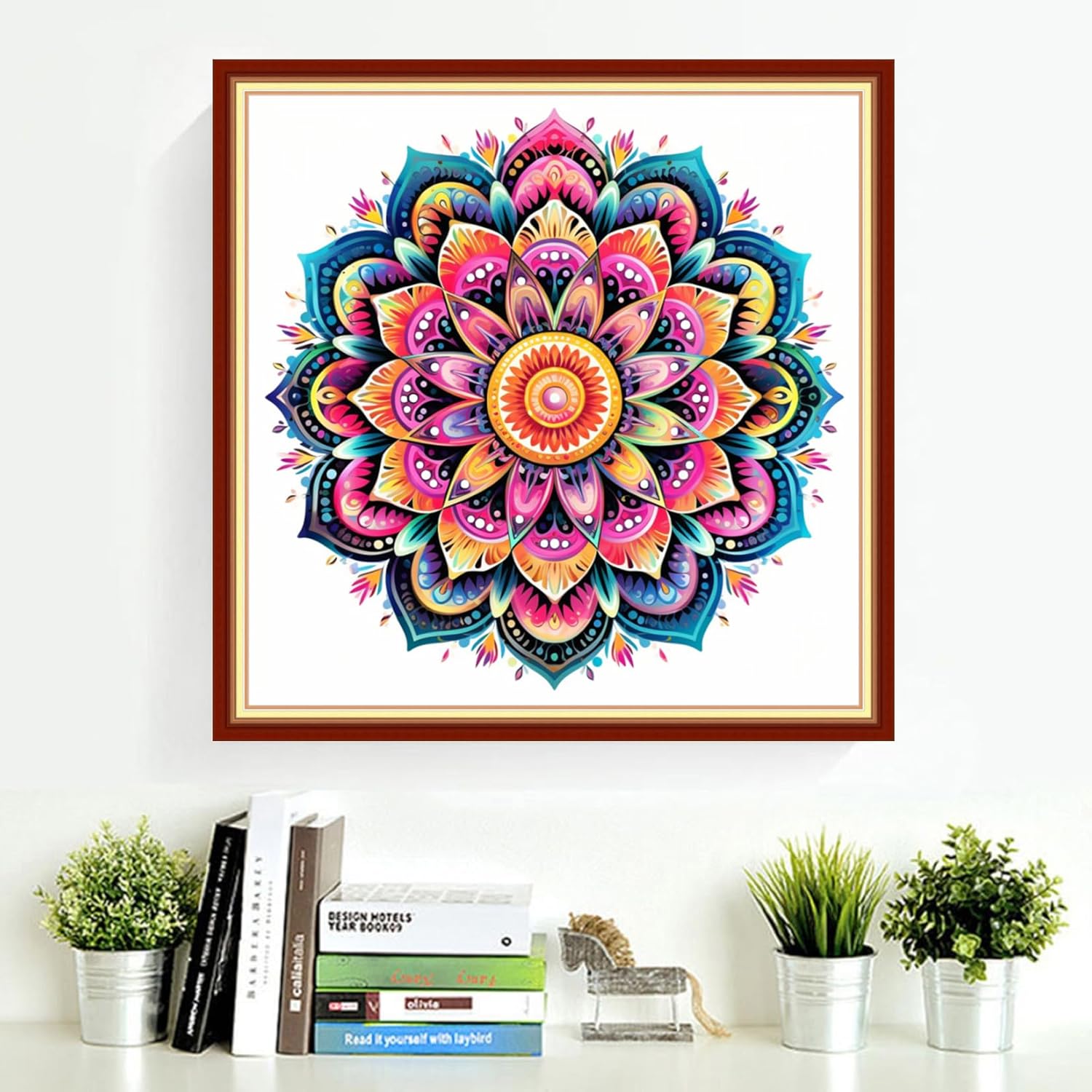 DMCVIVR Stamped Cross Stitch Kits for Adults Beginners Embroidery Kits 11CT Needlepoint Kits Cross Stitch Patterns Embroidery Patterns-Colorful Mandala 18x18 inc