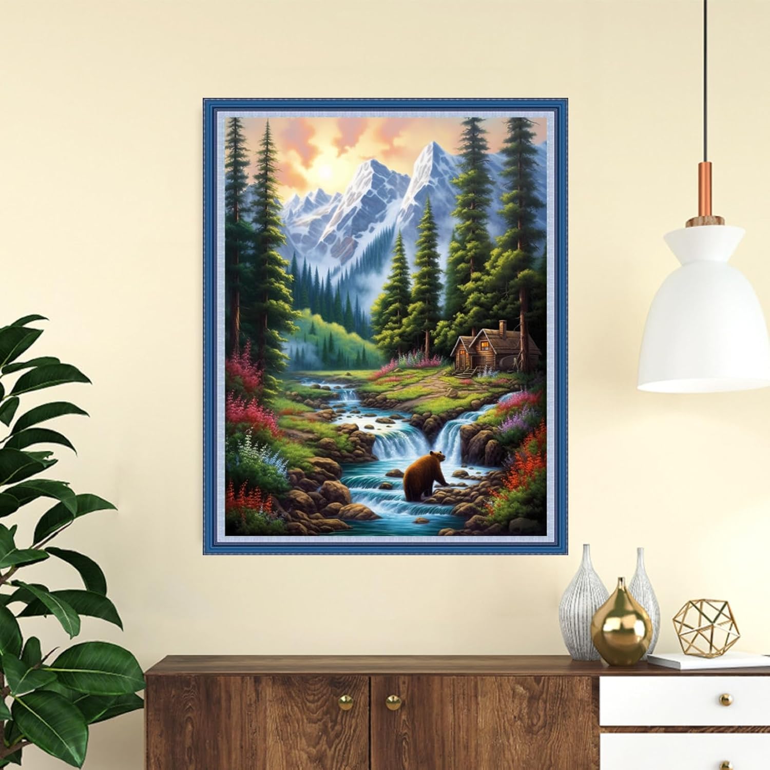 DMCVIVR Stamped Cross Stitch Kits for Adults Beginners Embroidery Kits 11CT Needlepoint Kits Cross Stitch Patterns Embroidery Patterns-Mountain and River Scenery 16x20 inch