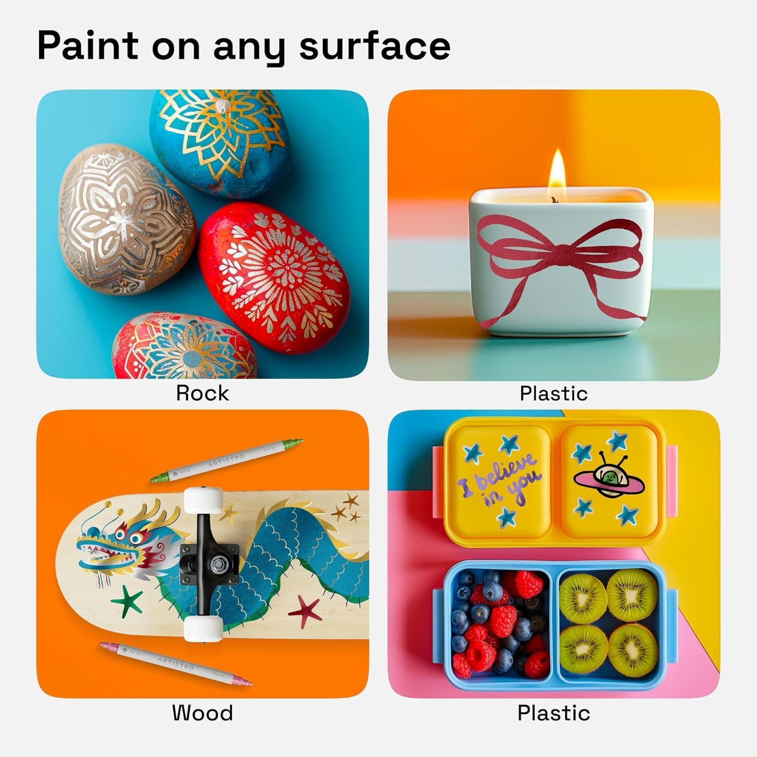 - MULTI-SURFACE: Artistro craft drawing markers are perfect for almost any surface. Paint on rocks, wood, glass, or more with these paint pens! Or use them as fabric paint pens.