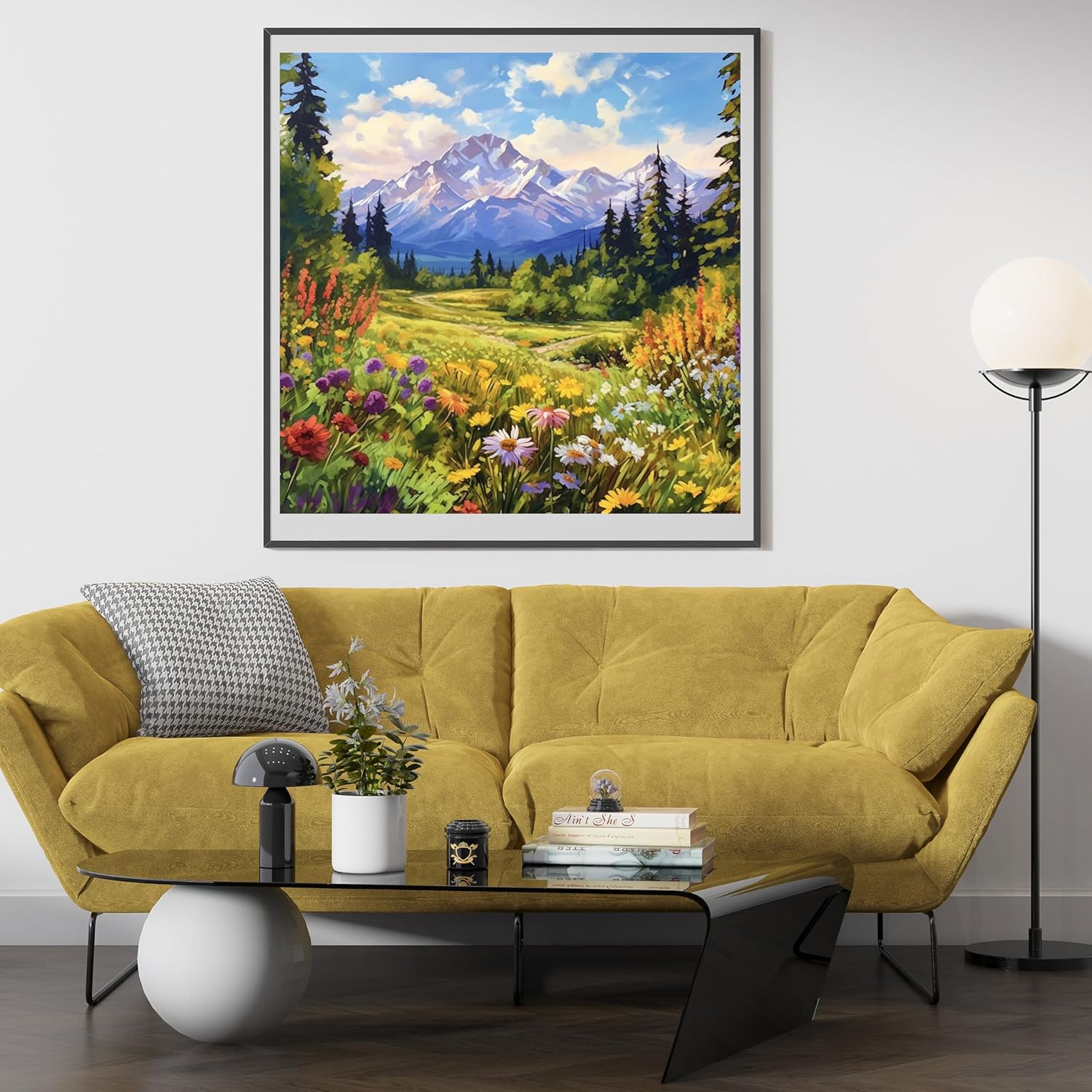 14CT Counted Cross Stitch Kits for Adults Mountain Flowers Advanced Stamped Cross Stitch Kits for Adults (Mountain 4)