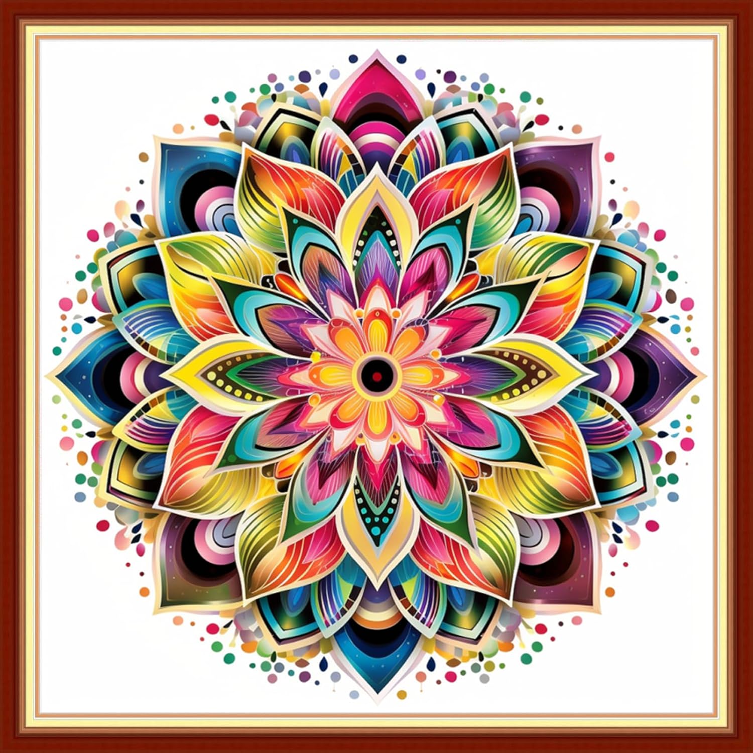 Joyhoor Cross Stitch Kits for Beginners Stamped Cross-Stitch Supplies Needlework preprint Embroidery Kits for Adults DIY Needlepoint Kits Embroidery Patterns 11CT- Magic Mandala 18x18 inchs