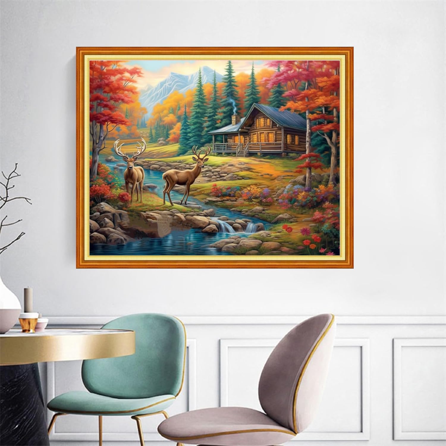 Joyhoor Cross Stitch Kits for Beginners Stamped Cross-Stitch Supplies Needlework preprint Embroidery Kits for Adults DIY Needlepoint Kits Embroidery Patterns 11CT-Hut elk 16x20 inchs