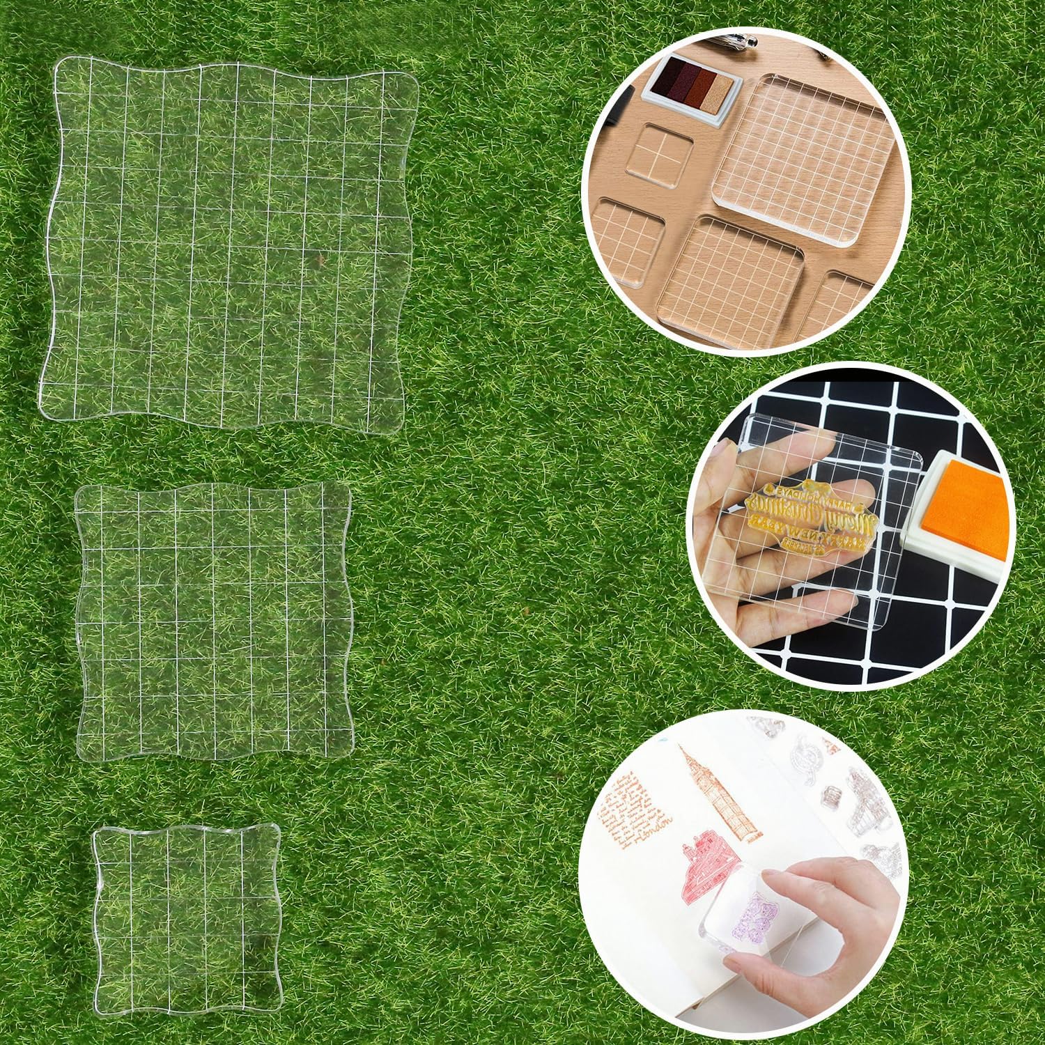 3Pcs Wave-Like Acrylic Blocks Set - Clear Stamp Blocks with Grid Lines for Scrapbooking Crafts