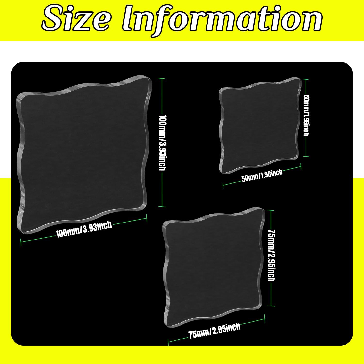 - WHAT YOU WILL RECEIVE: 3 sizes sector acrylic stamp blocks: small 2" x 2" x 0.6", medium 3" x 3" x 0.6", large 4" x 4" x 0.6".