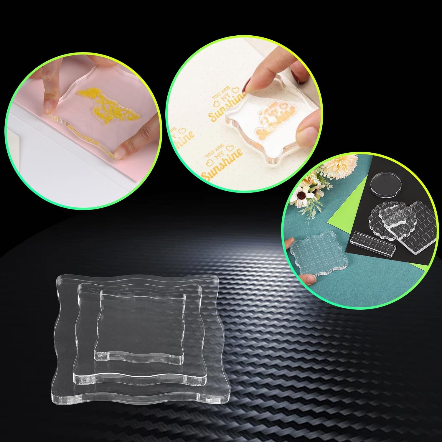3-Piece Clear Acrylic Stamp Blocks - Wavy Blocks with Grid Lines for Scrapbooking Crafts