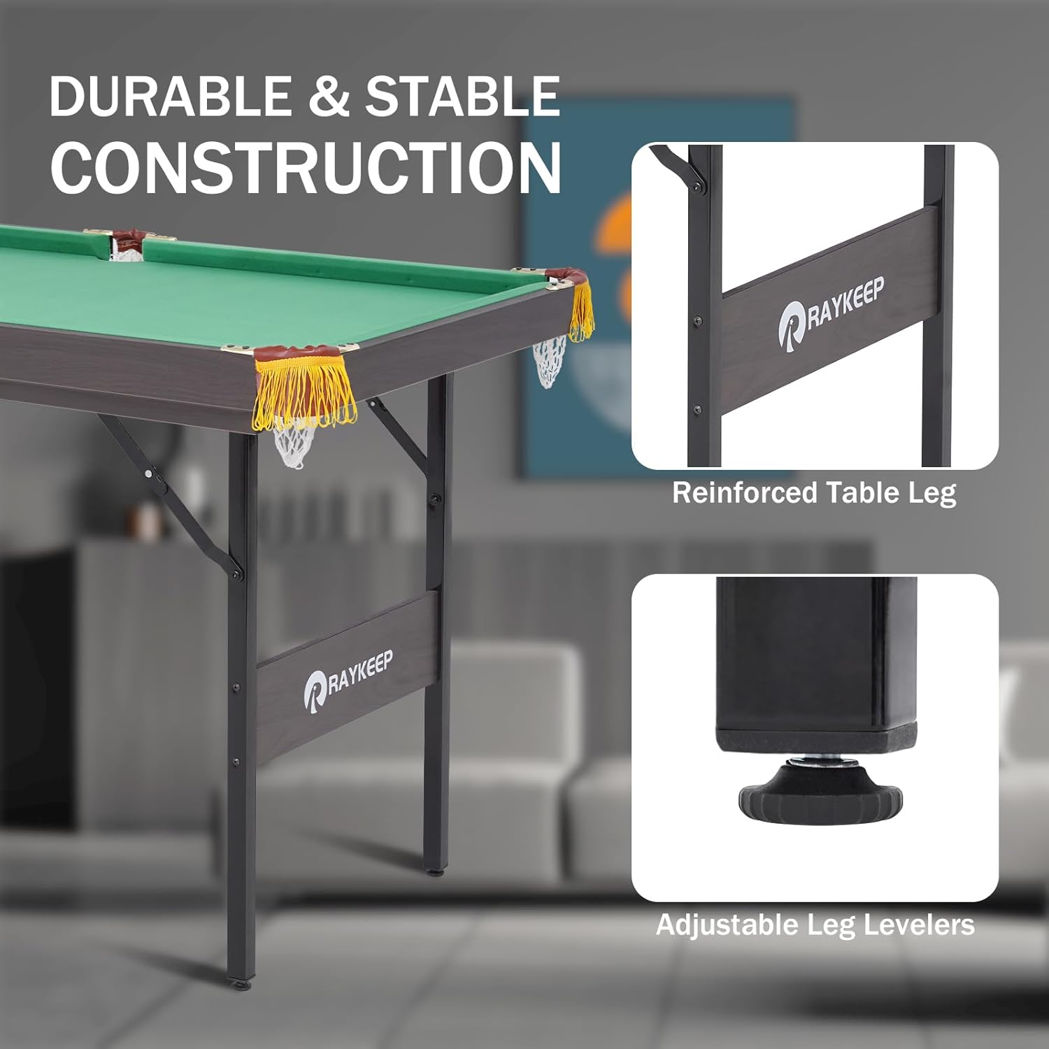 - 【DURABLE CONSTRUCTION】This pool table for kids is equipped with crossbar leg supports and adjustable levelers and effectively prevents any shaking or shifting during gameplay. High-quality MDF materials guarantee long-term durability.