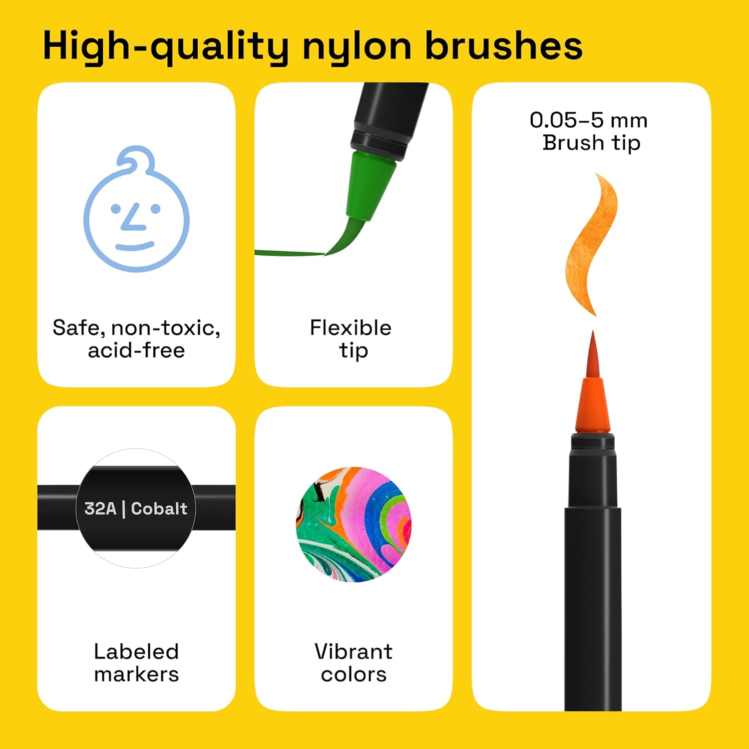- HIGH QUALITY NYLON PAINTBRUSHES: The nylon brushes on these watercolor brush pens have 0.05-5 mm tips that are self-moistening, self-cleaning, and won't fracture. No need to wet the brushes, just paint and go!