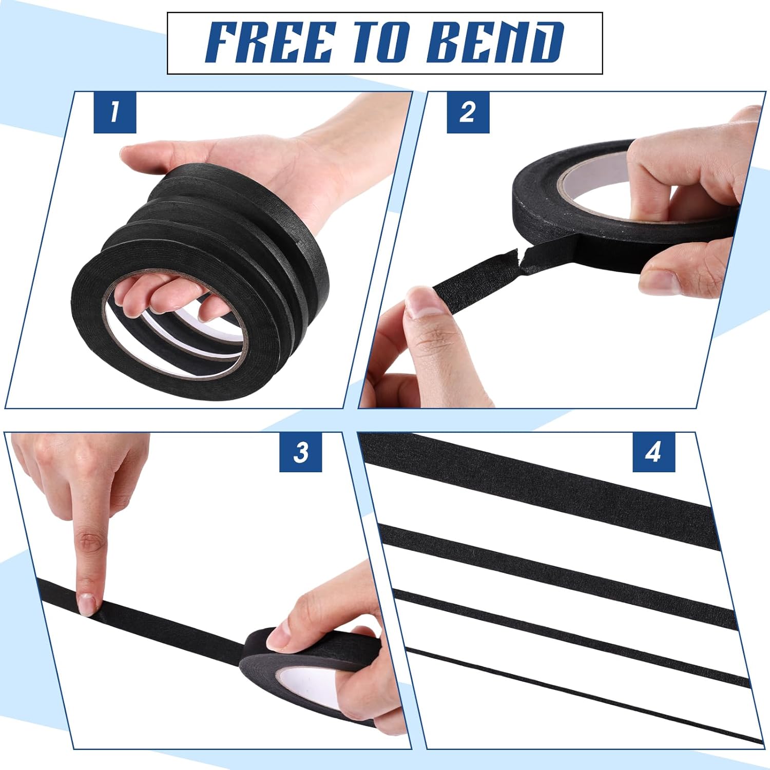 - How to Paste the Curve: when you want to paste the curve, you must tighten the masking tape with your hand, hold the tape while slowly sticking it out according to the shape you want, the process is simple and fast