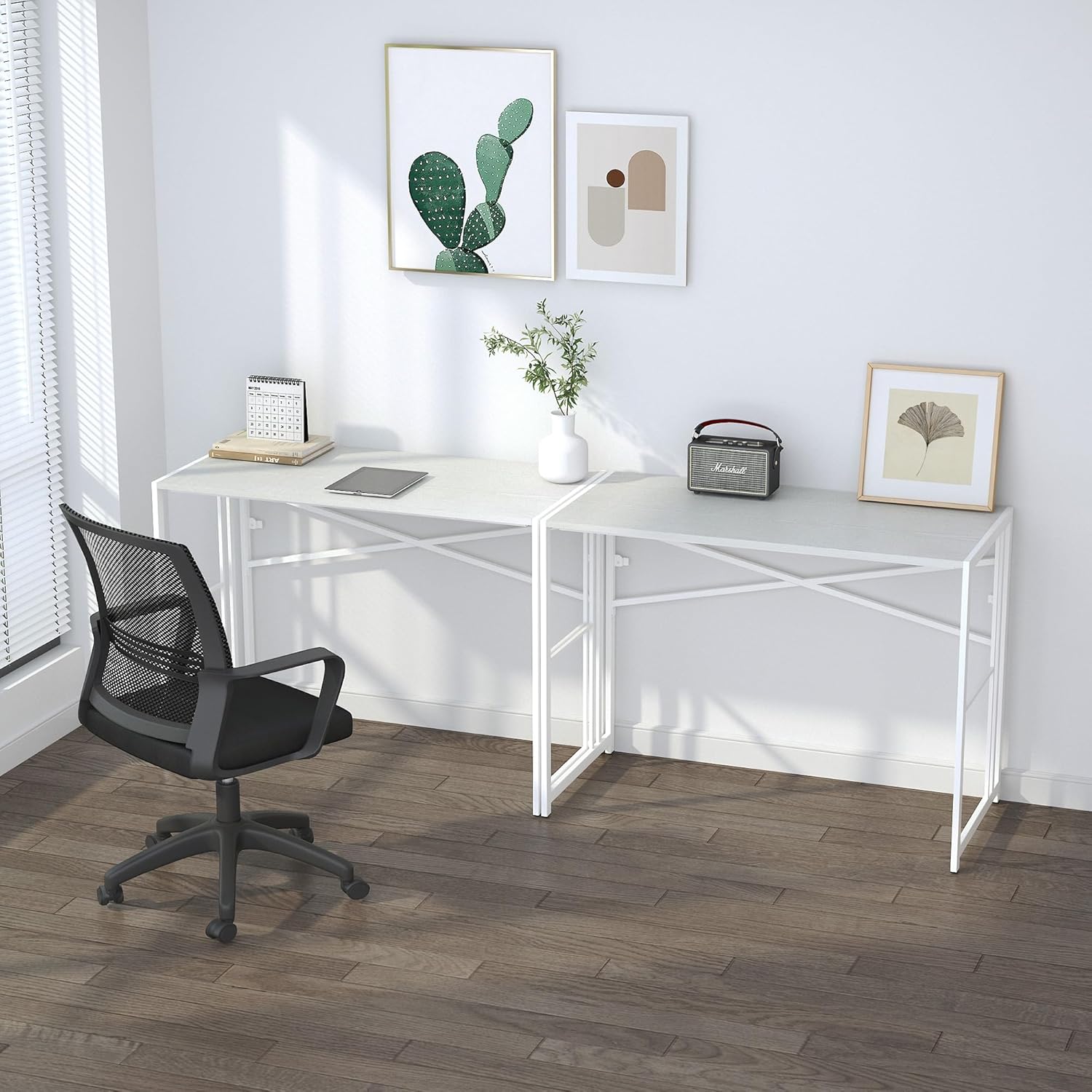 Folding Desk 40 inch Writing Gaming Computer Camping Table, No Assembly Required Home Office Desk, White