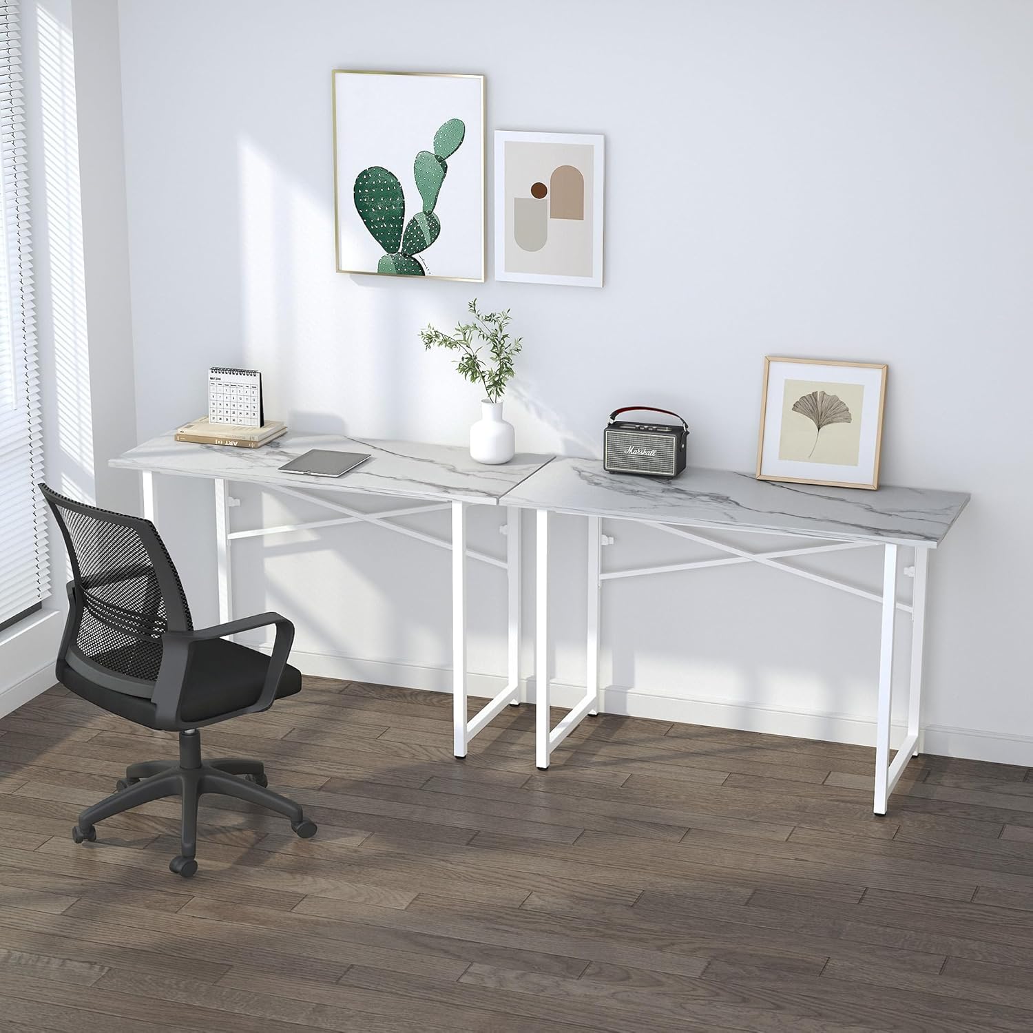 47 inch Folding Desk No Assembly Required, Writing Gaming Computer Camping Table, Home Office Desk, White Marble