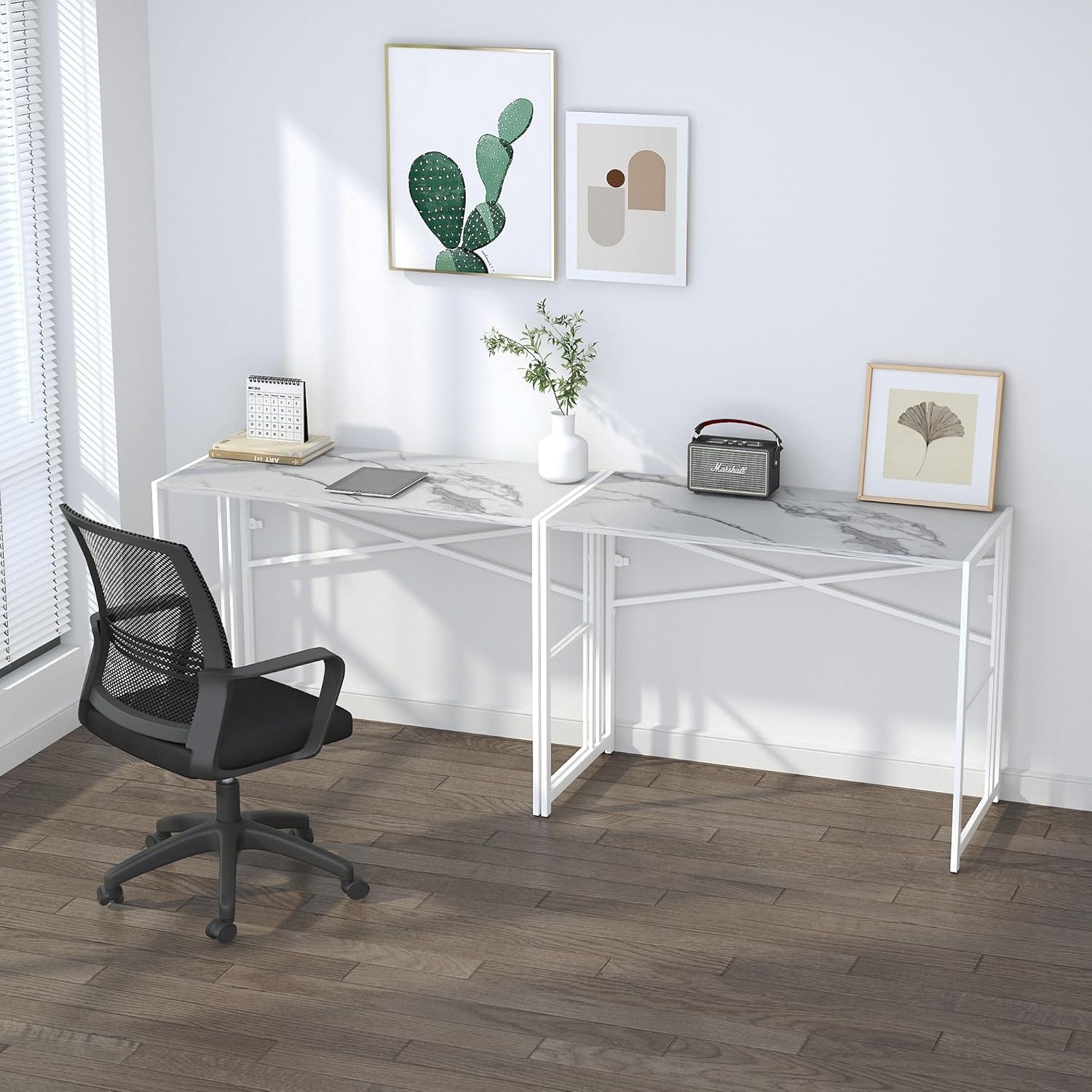 Folding Computer Desk 40 inch Writing Gaming Computer Camping Desk, No Assembly Required Home Office Table, White Marble