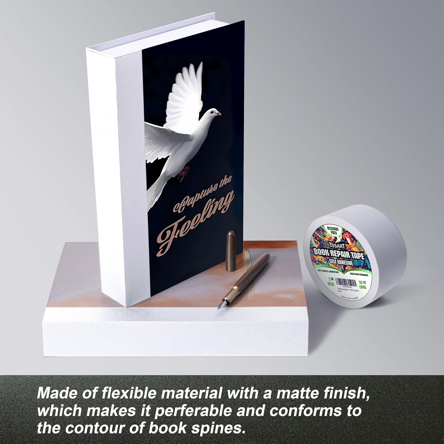 - TSSART Matte Book Repair Tape - Made of Strong Polyethylene Material with Matte Rubbing Craft, offers the very strong fiber backing adhesive designed specifically for the purpose of saving your books and keeping them in immaculate condition for years to come.