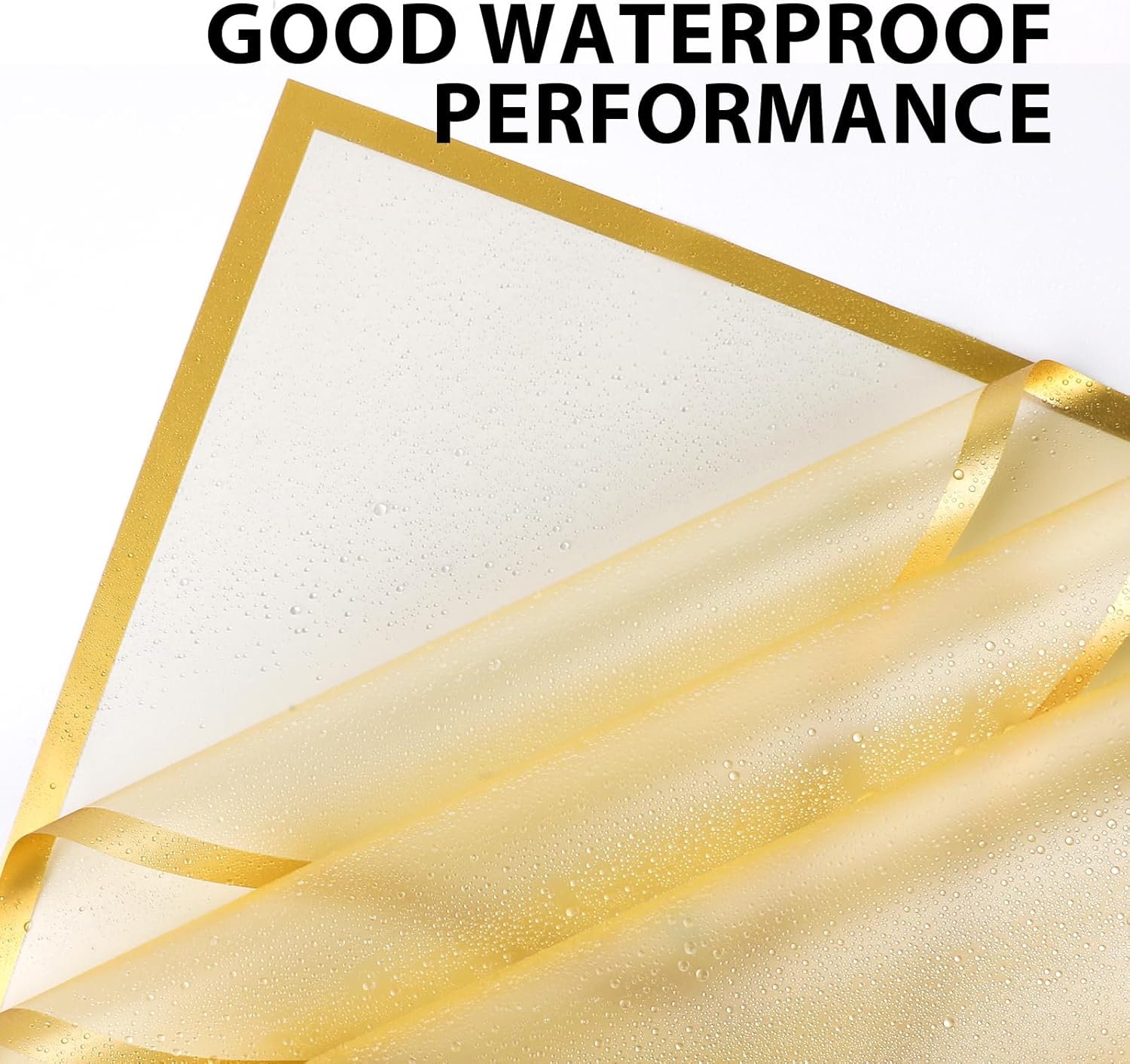 - 【Elegant Design】Florist paper is designed with using classic semi transparent material, the edges are designed in gold color with a frosting, features glossy and vibrant colors, smooth and comfortable to touch. Is the perfect choice for bouquet packaging and gift box packaging.