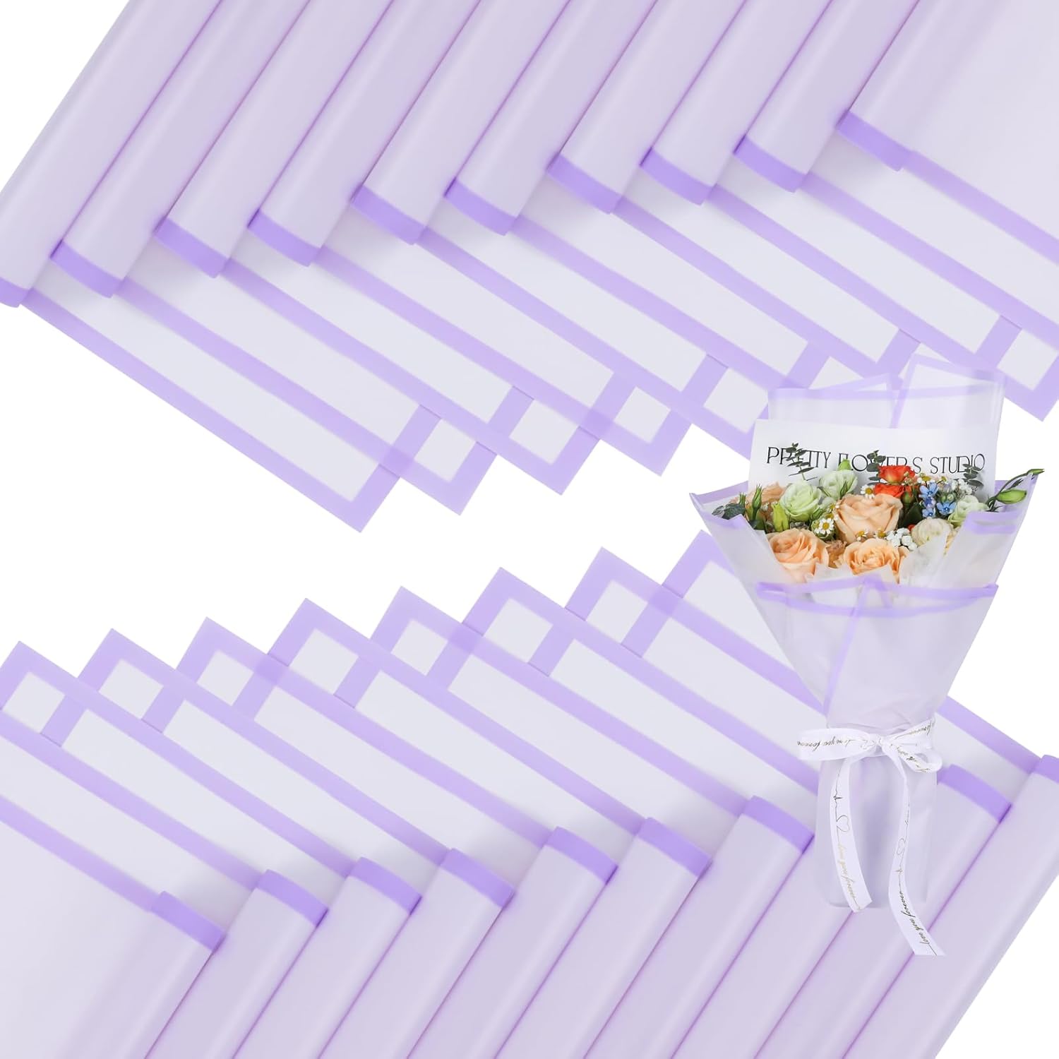 - 【Elegant Design】Florist paper is designed with using classic semi transparent material, the edges are designed in light purple color with a frosting, features glossy and vibrant colors, smooth and comfortable to touch. Is the perfect choice for bouquet packaging and gift box packaging.