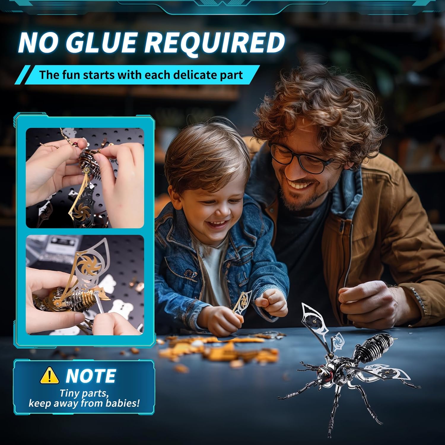 - EXCELLENT DESIGN & TABLE TOYS: 3D Wasp Metal Puzzle is designed with smooth body lines, lightweight wings and lifelike overall shape. In addition to the fun of assembling, you can also use your imagination to freely control its appearance. Metal models have multiple movable joints on its legs, abdomen, wings that allow for various adjustments, enabling you to create different poses, which is very playable. Special color and high-end appearance make him a great desktop decoration for offices, living rooms, bedrooms, cafes and other places.