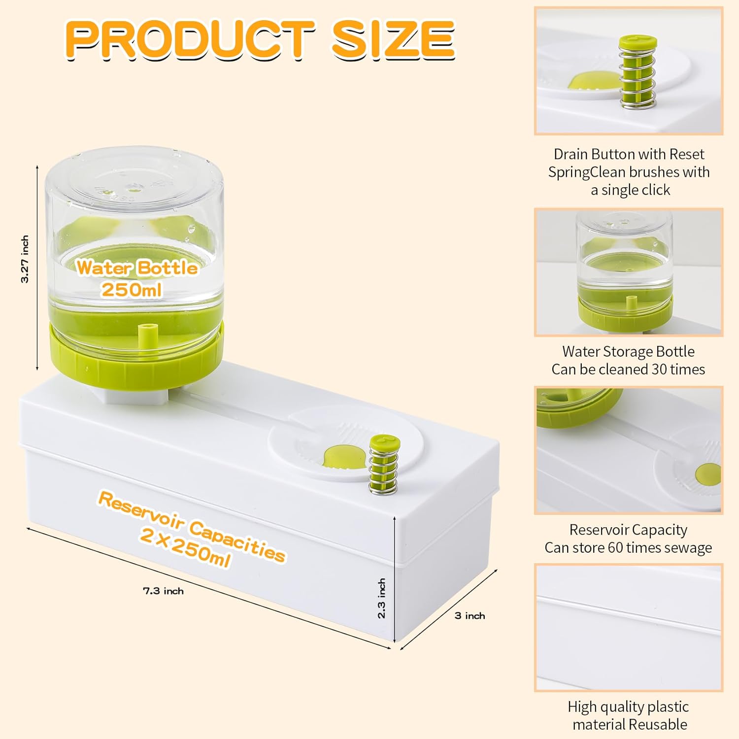 - šØ EXCELLENT DESIGN: Our paint brush rinser includes a 250ml bottle that can be rinsed 30 times, only a small amount of water is needed to clean the oil brushes, effectively saving water, can keep all the colors clean and avoiding color mixing, enough for you to complete a perfect painting.