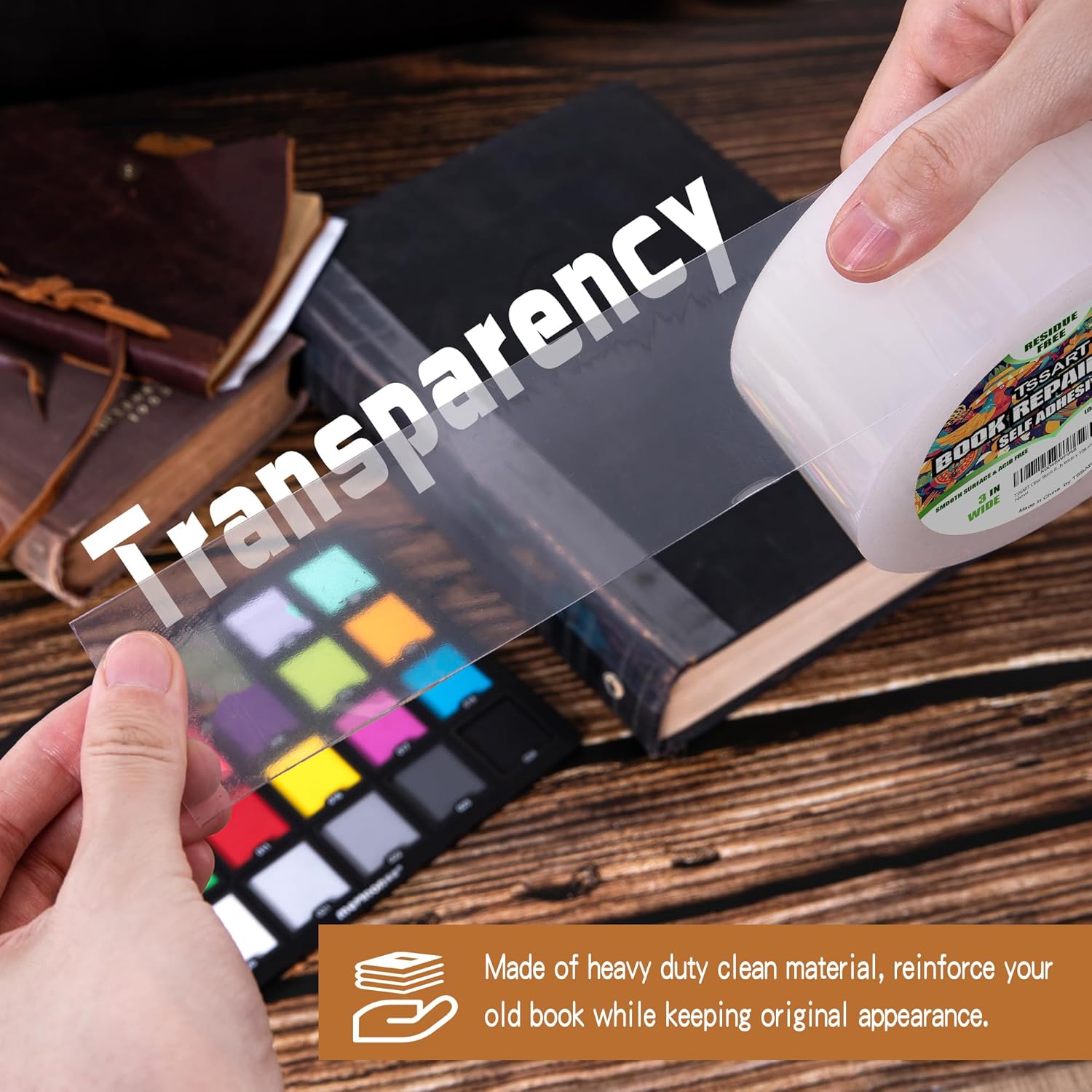 - TSSART Clear Book Repair Tape - Made of flexible material which attached with strong adhesive, help build beautiful line shape of your books, stretchable and can conform to hold the spine exactly where you want it, perfect for various binding and repair needs and an essential item for librarians.