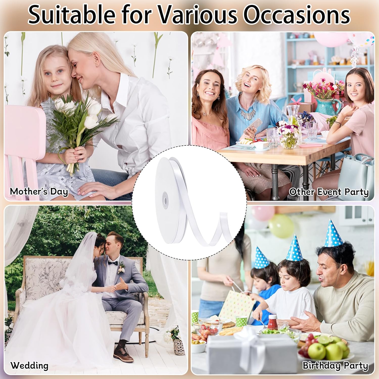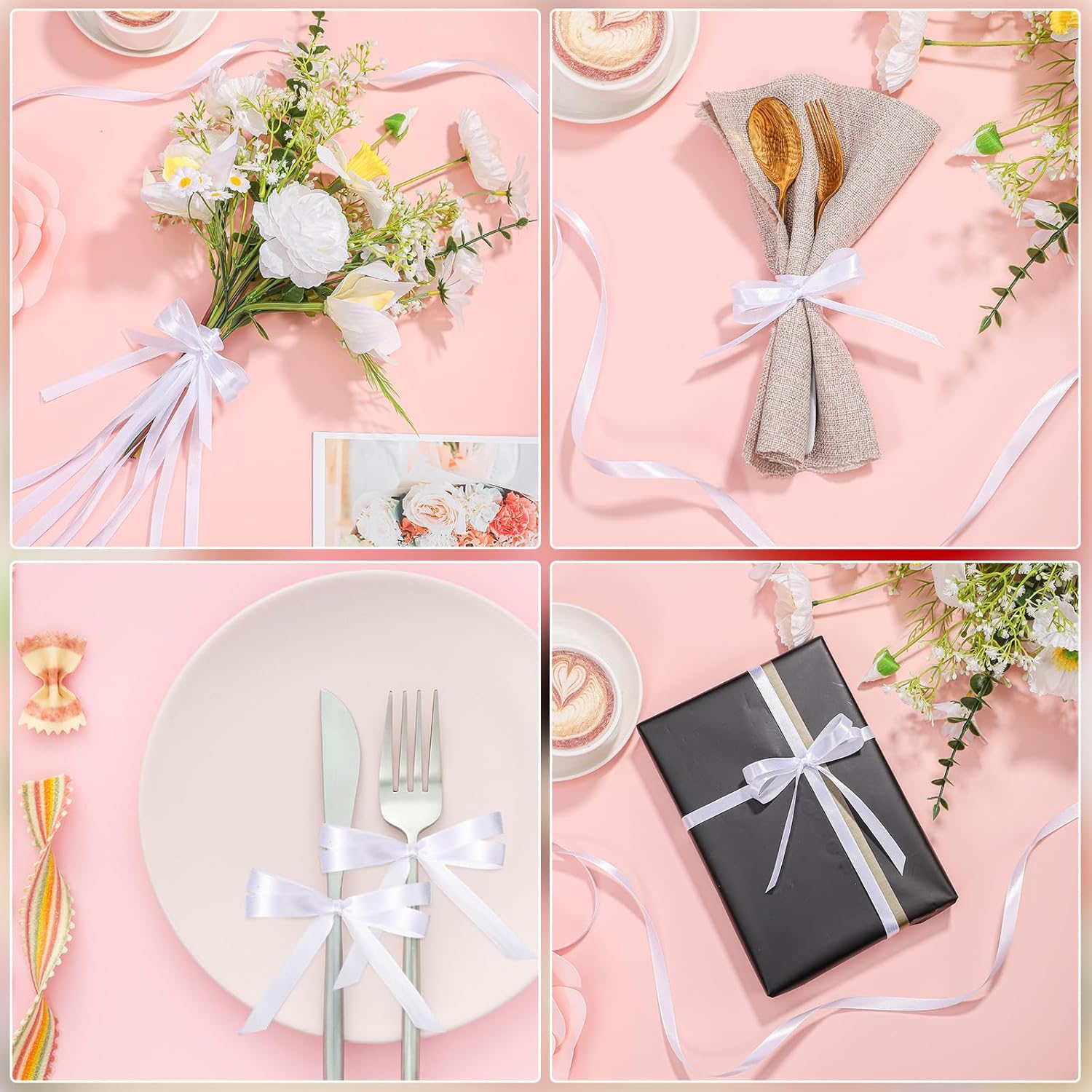 - ❤【Wide Application】White satin ribbon can be used to wrap gifts and make your gifts look more beautiful. In addition, the white ribbon is also suitable for wedding decoration, flower bouquet, balloons, wreaths, hair bows, cake packaging, craft project, home decoration, etc.
