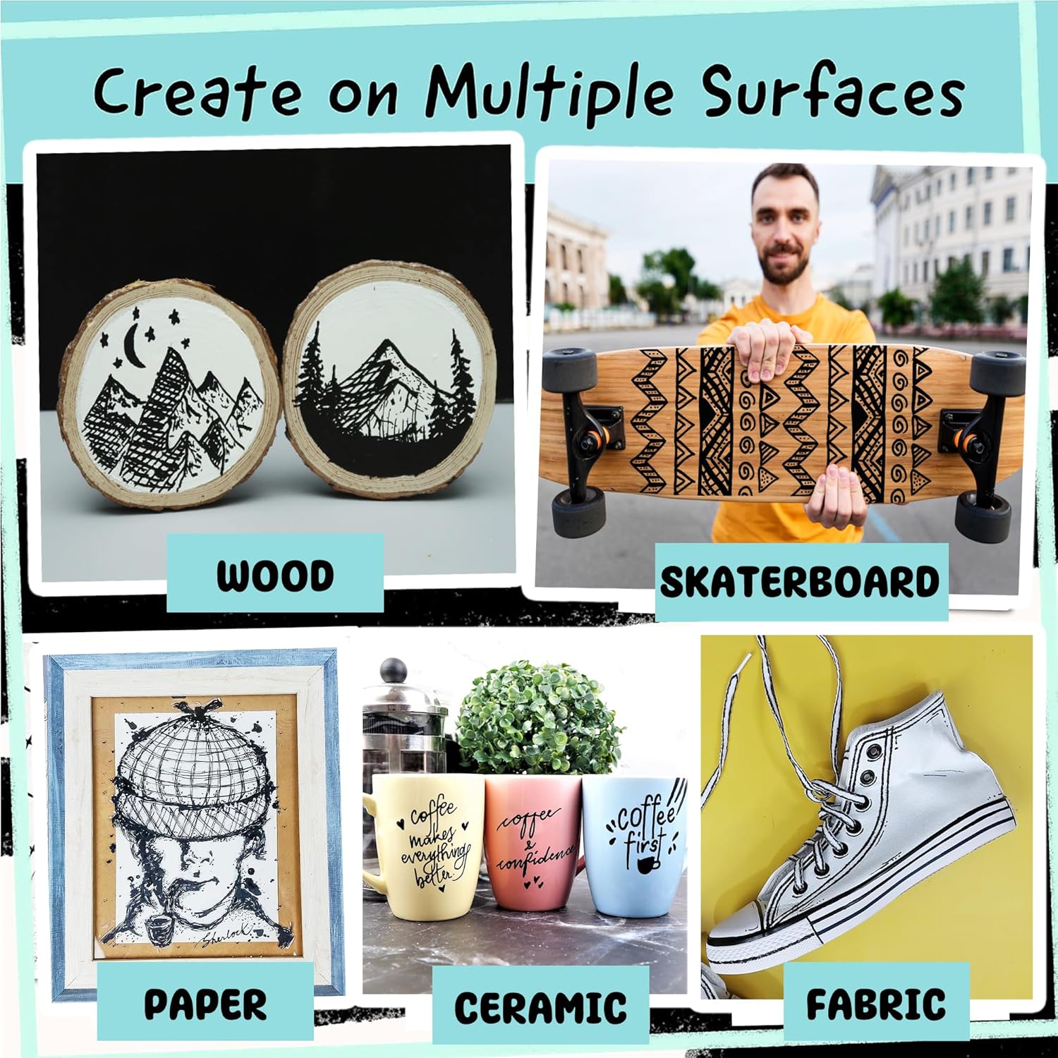 - Multiple Use - Get creative with DIY crafts using these black paint marker for canvas, black fabric marker, metal, porcelain, plastic, stones, polymer clay, wood, as acrylic paint pens for rocks painting, black paint marker for metal
