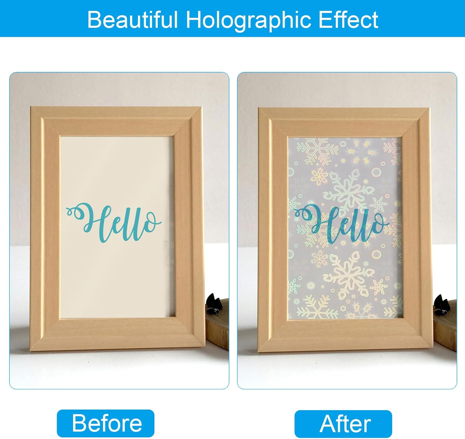 - The holographic sticker paper is great for decorating photos, scrapbooks, laptops, cellphone covers, gift cards, decals, posters, signs, boxes, water bottles, letters, books, murals, envelopes, etc. It is also suitable for home decoration, such as beautifying window, door, mirrors, or most of surfaces that are smooth, flat, and dry, such as metal, plastic, glass, cardboard, paper, and so on.