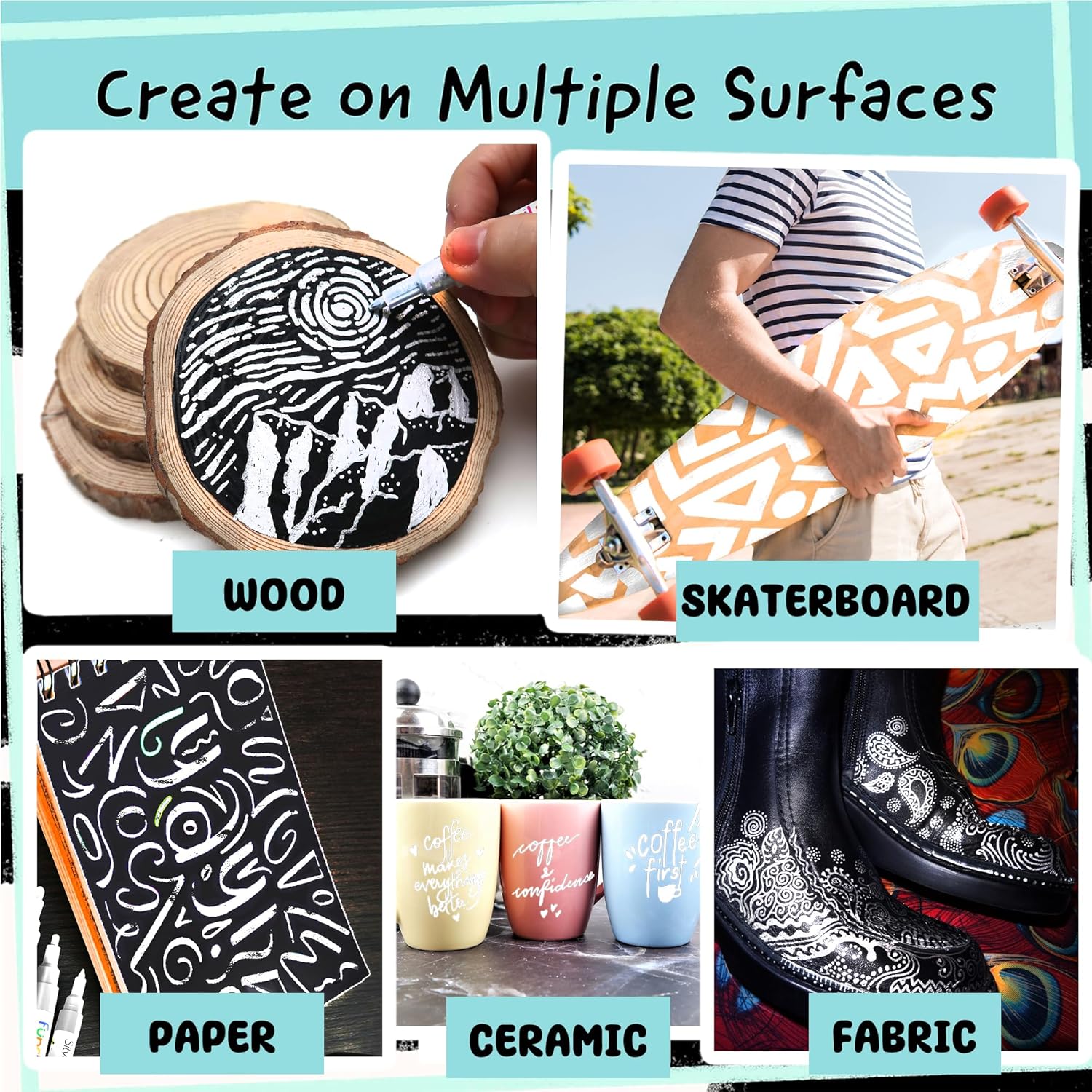 - Multiple Use - Get creative with DIY crafts using these White paint marker for canvas, acrylic white fabric marker, metal, porcelain, plastic, stones, polymer clay, wood, as paint markers for rocks and metal