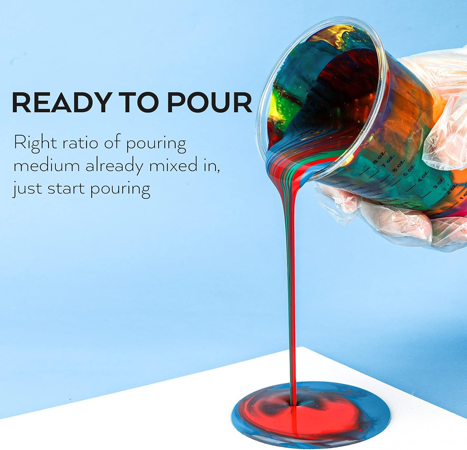 - READY TO POUR PAINT: The acrylic pour paint kit includes 12 classic colors and 2 Metallic Acrylic Paint Gold & Silver with large volume 8.45 oz / bottle. This high-flow pour paint has the right ratio of pouring medium already pre-mixed in, no need to mix with any mediums or additives, just start pouring and creating unique and layered in one step.