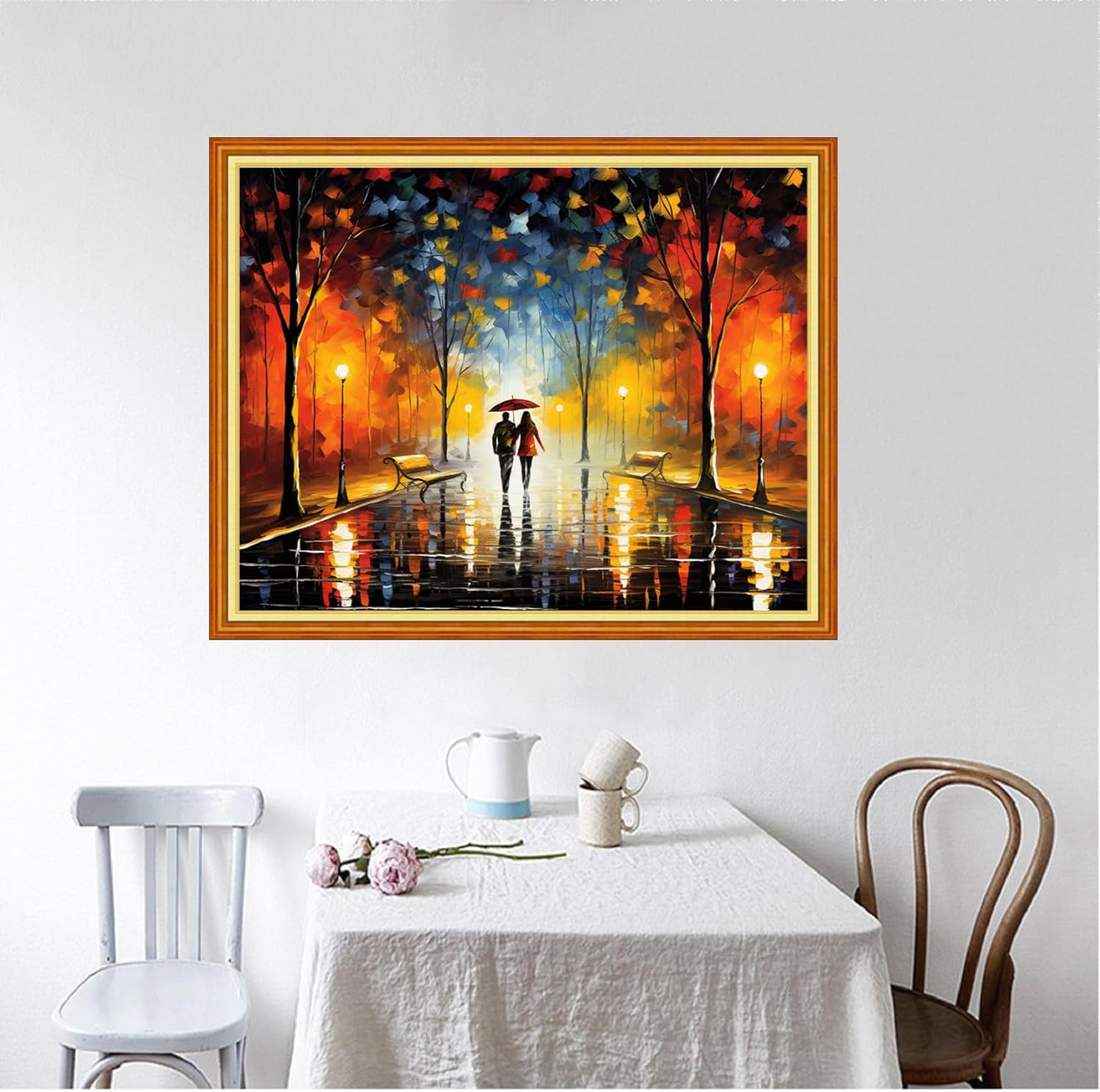 Foxhool Beginners Cross Stitch Kits Stamped Full Range of Embroidery Kits for Adults DIY Cross Stitches kit Embroidery Patterns for Needlepoint kit-Romantic Stroll 16x20 inch
