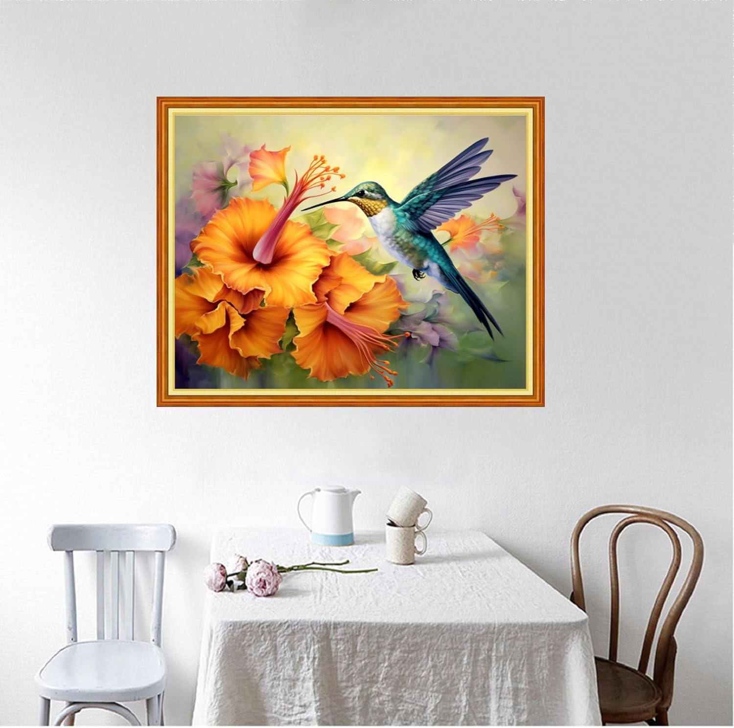 Foxhool Beginners Cross Stitch Kits Stamped Full Range of Embroidery Kits for Adults DIY Cross Stitches kit Embroidery Patterns for Needlepoint kit-Hummingbirds Gather Honey 16x20 inch