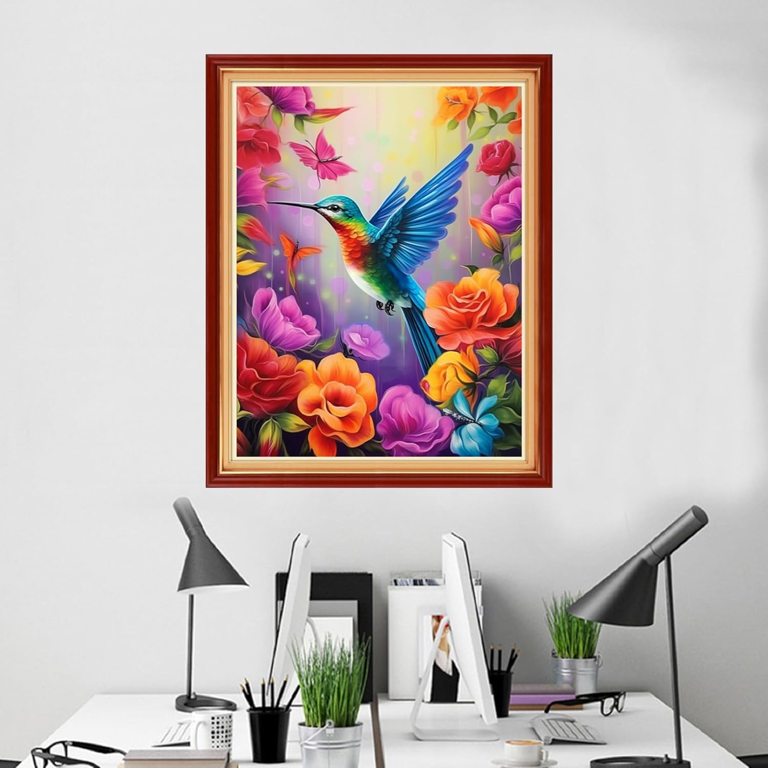 Foxhool Beginners Cross Stitch Kits Stamped Full Range of Embroidery Kits for Adults DIY Cross Stitches kit Embroidery Patterns for Needlepoint kit-Flower Hummingbird 16x20 inch