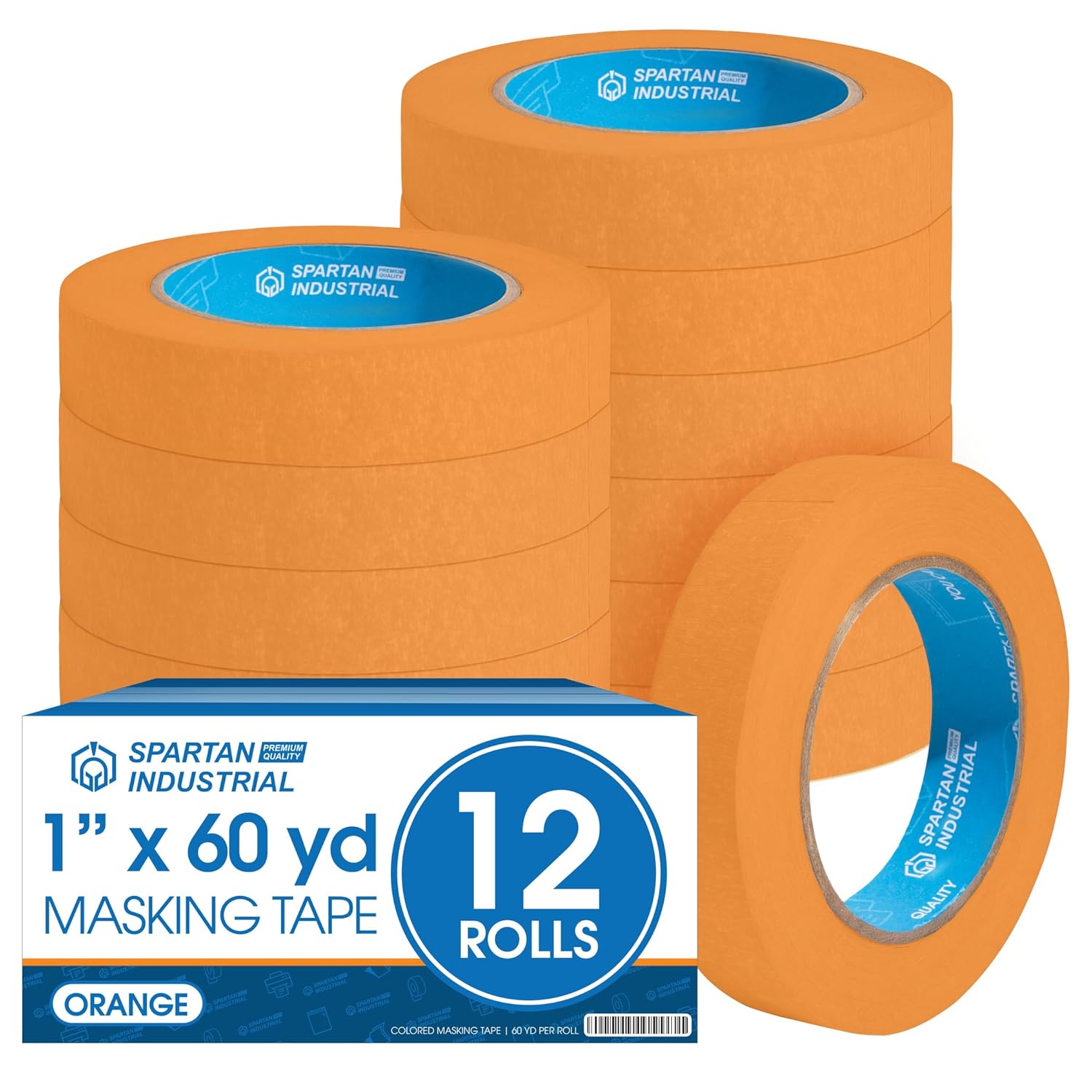 Spartan Industrial - 1" X 60 yd Orange Masking Tape - 12 Colored Tape Rolls for Bundling, Labeling, and More - No Residue, 5.5 Mil