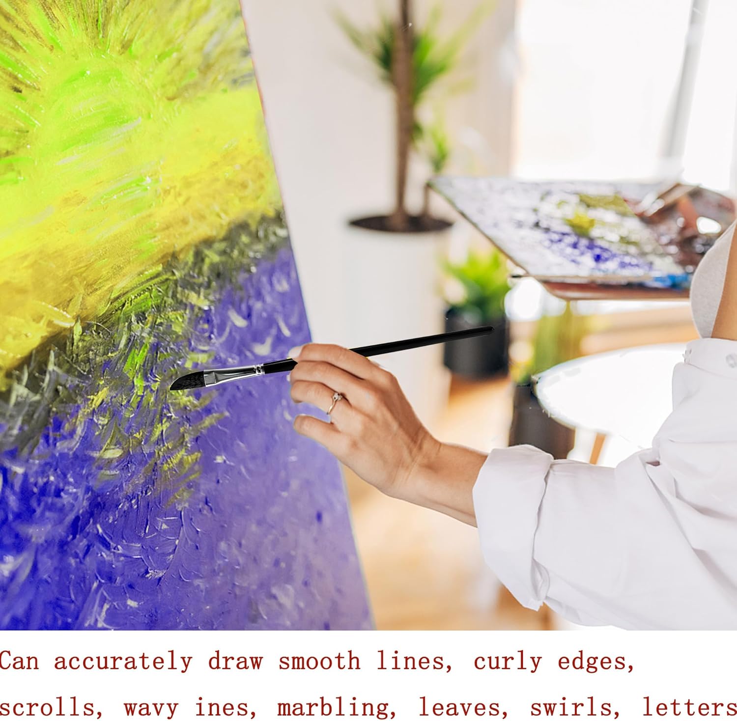 - Dagger Paintbrush Set: Dagger paintbrushes set includes 4 models 1/8", 1/4", 3/8", 1/2", can accurately draw smooth lines, curly edges, scrolls, wavy lines, marbling, leaves, swirls, letters, and at the same time to meet the edges of the artwork, smooth and natural strokes, so that you can easily draw professional and perfect art effects