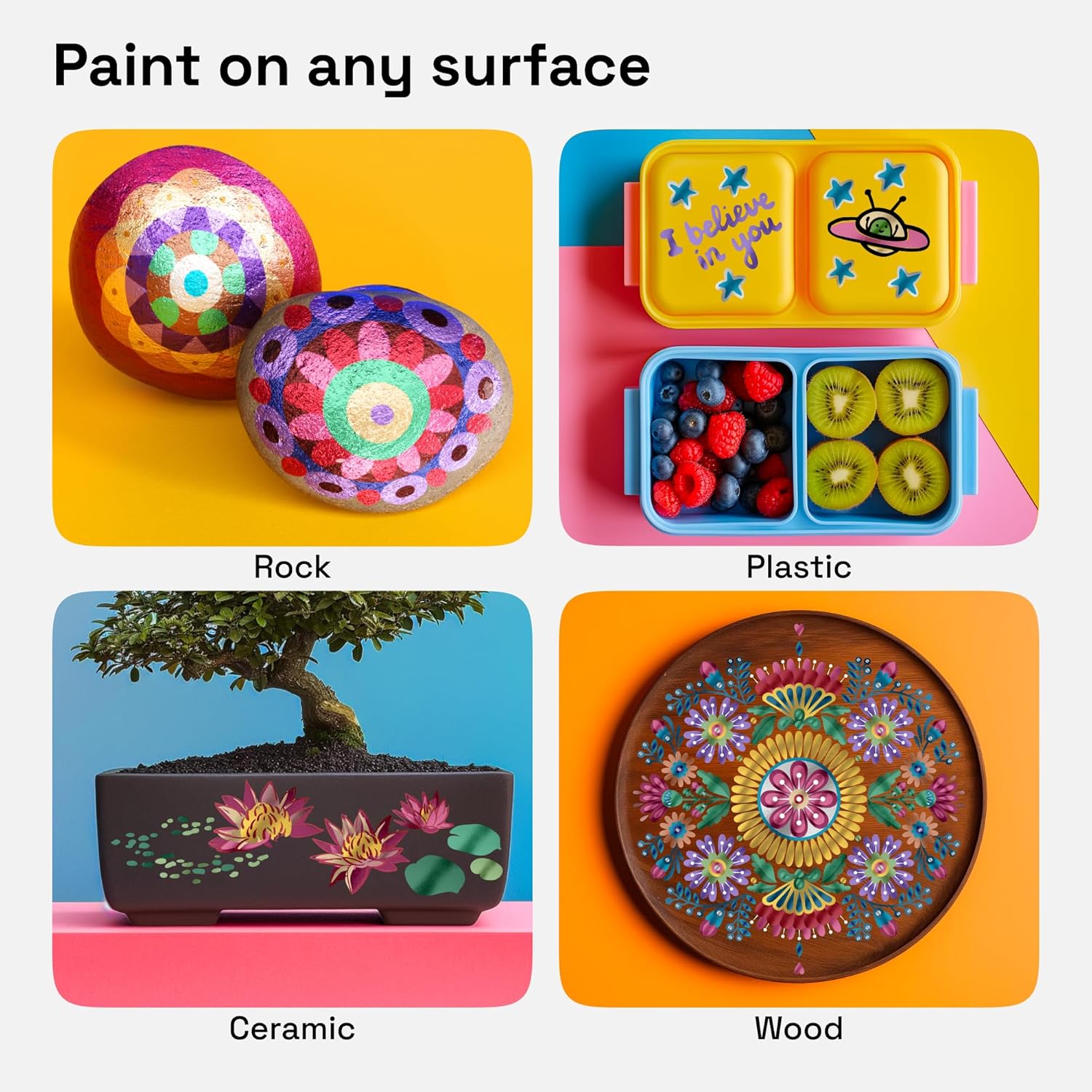 - PREMIUM QUALITY: This 12-pack of metallic acrylic paint markers features high-quality acrylic paint, so you donβt have to make a second layer! The ink in each metallic pen is water-based and features a durable nib.