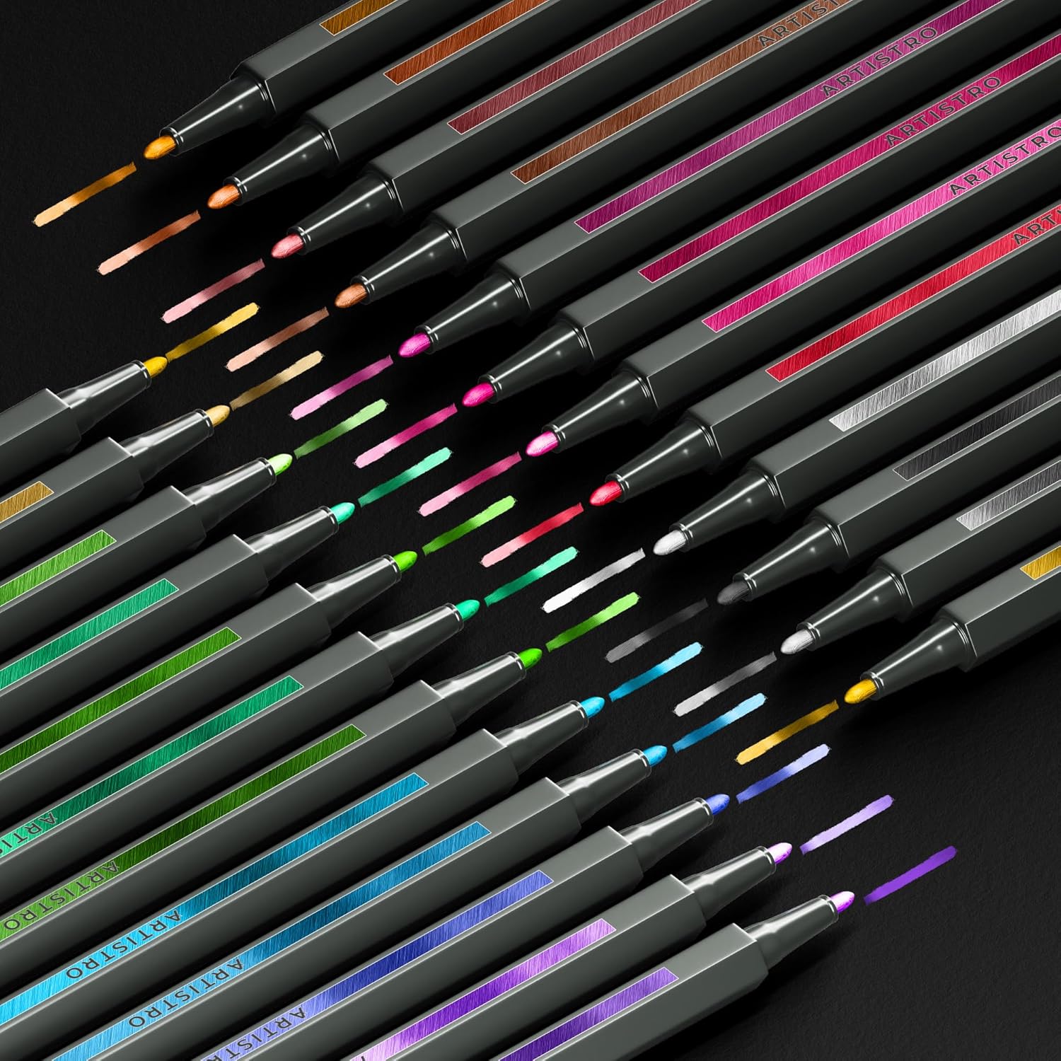 ARTISTRO Paint Pens for Rock Painting, Stone, Ceramic, Glass, Wood, Fabric, Scrapbooking, DIY Craft Making (24 Metallic Fine Tip)