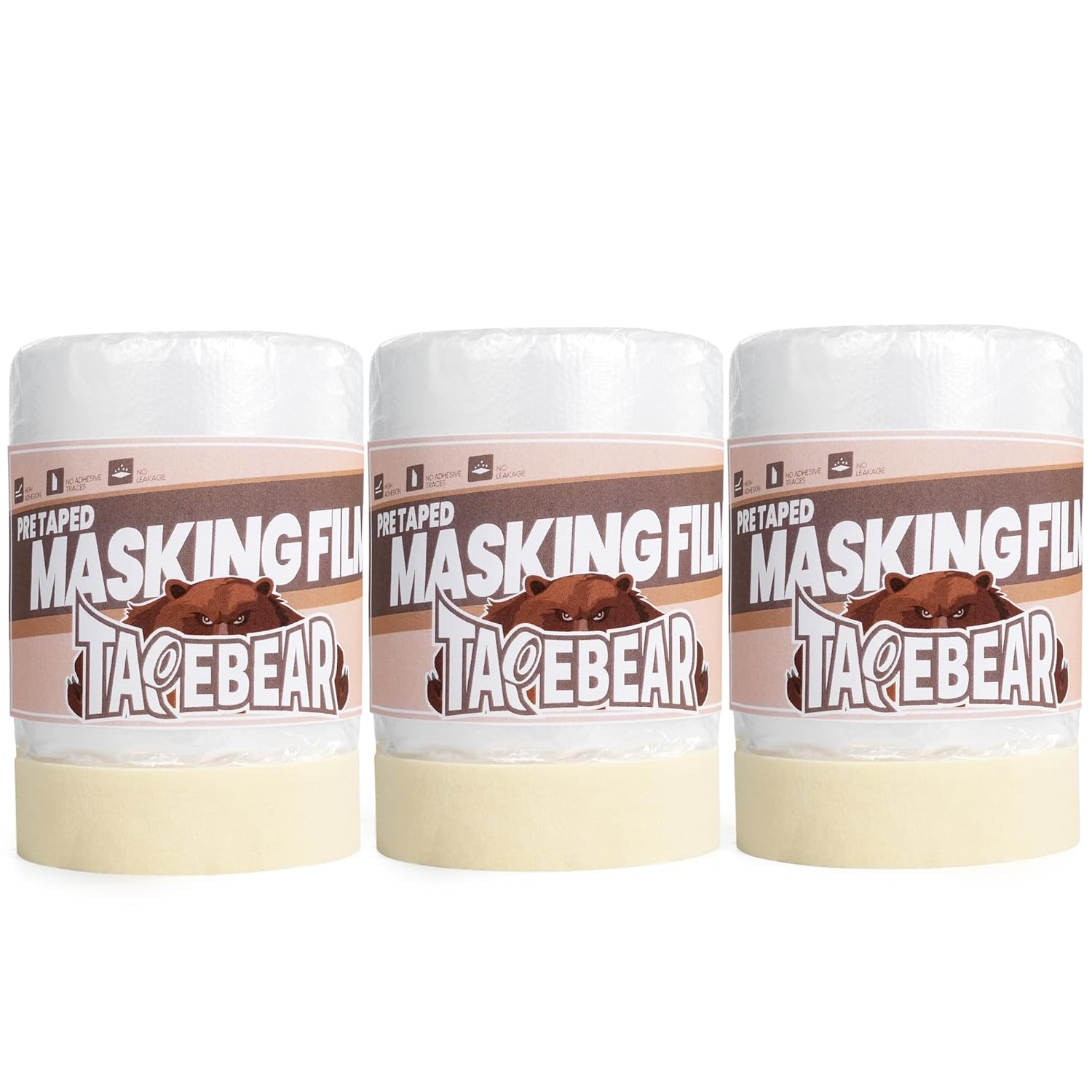 TAPEBEAR Pre-Taped Masking Film 22inch x 65feet(550mmx 20m), Plastic Cover for Painting, Tape and Drape, Plastic Sheeting for Automotive, Floor, Appliance and Furniture, 3Rolls