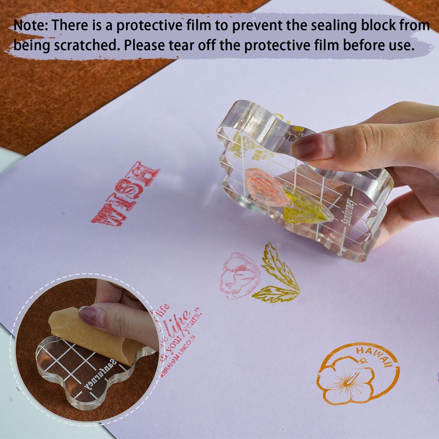 - Material - The stamp block is made of clear acrylic material, durable, not easy to damage, easy to clean and can be used for a long time. Note: There is a protective film for protecting the stamp block from scratches, please tear off the film before use.