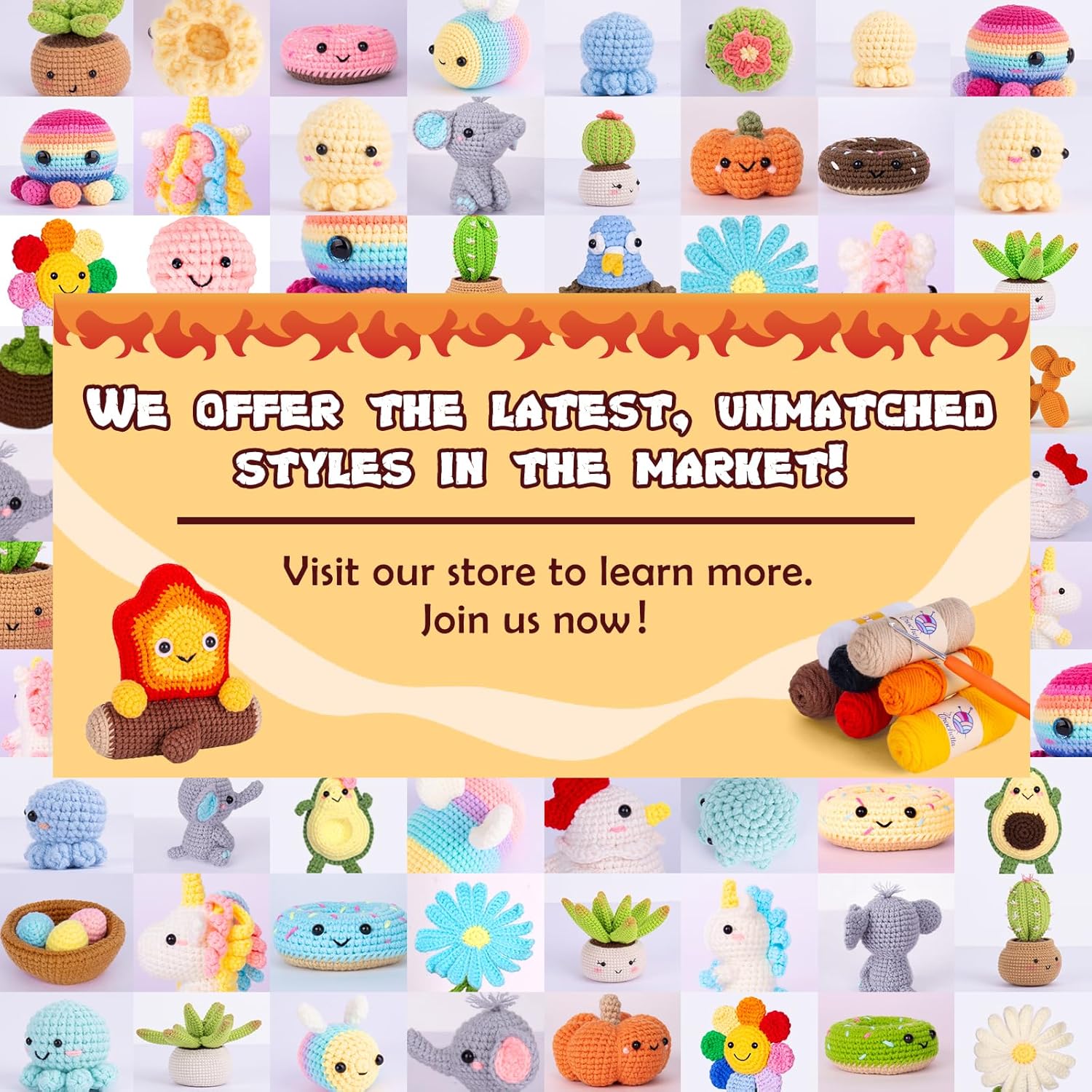 - Crochet Kit Filled with Love: Our crochet kit is inspired by the warmth and radiance of the flame spirit from fairy tales. It's not only adorable but also easy to create. Perfect for home decor or as a charming toy for children over 8 years old. Add a touch of fairy tale charm to your room!