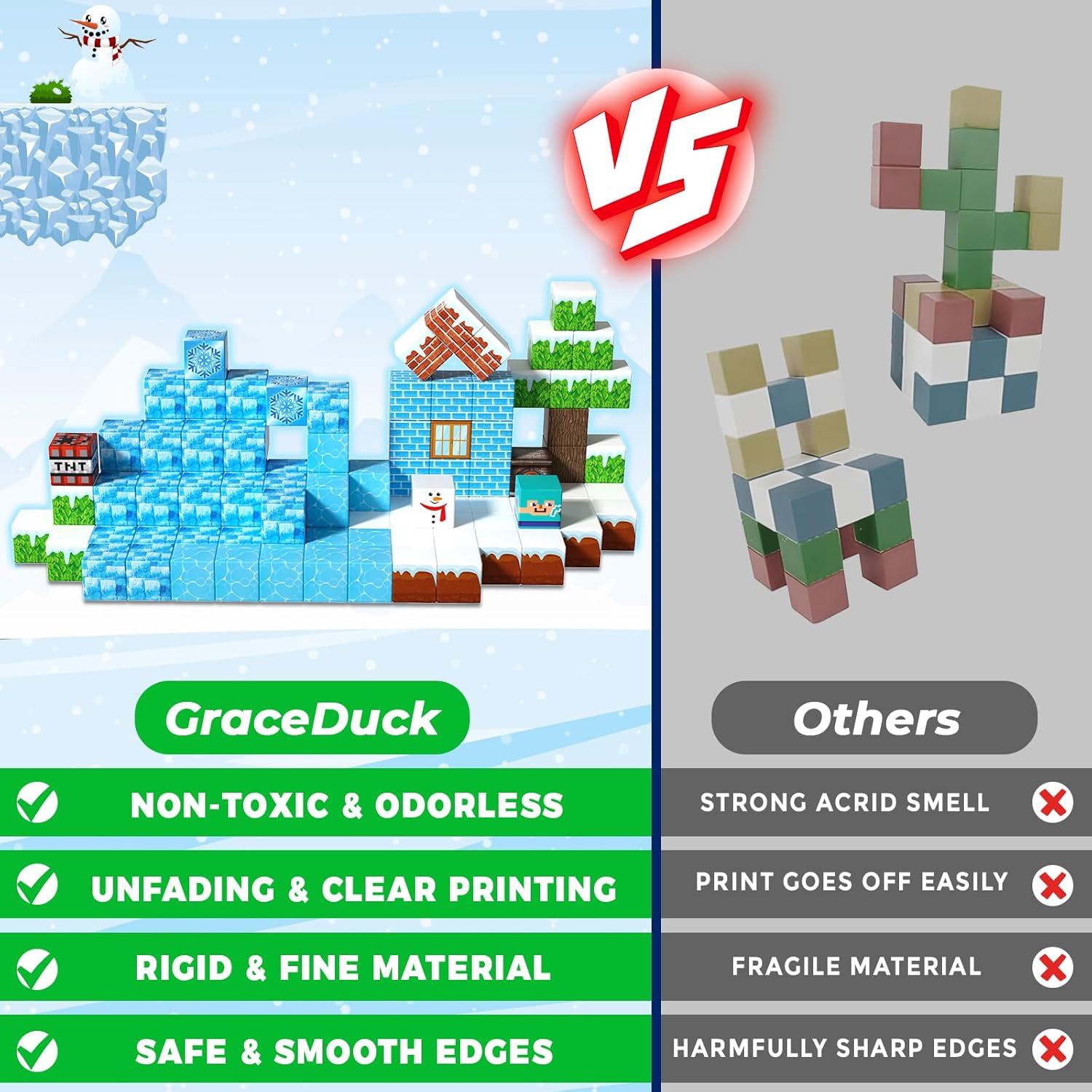 - 【 Build Ice Castle Magnetic Cube Kit】Including 100 magnetic cubes in 16 colors. Idea booklet with the storyline and beautiful patterns, keep them busy in clever ways. Graceduck magnetic activity cubes are made of high-quality ABS material and crafted with round edges and the right size. Our magnetic cubes kit with super strong internal magnetic, which is easier for toddlers ages 3+ to stick the cubes together and make builds sturdy. Perfect STEM toys help kids gain a deeper understanding of the structure and learn about magnetic properties!