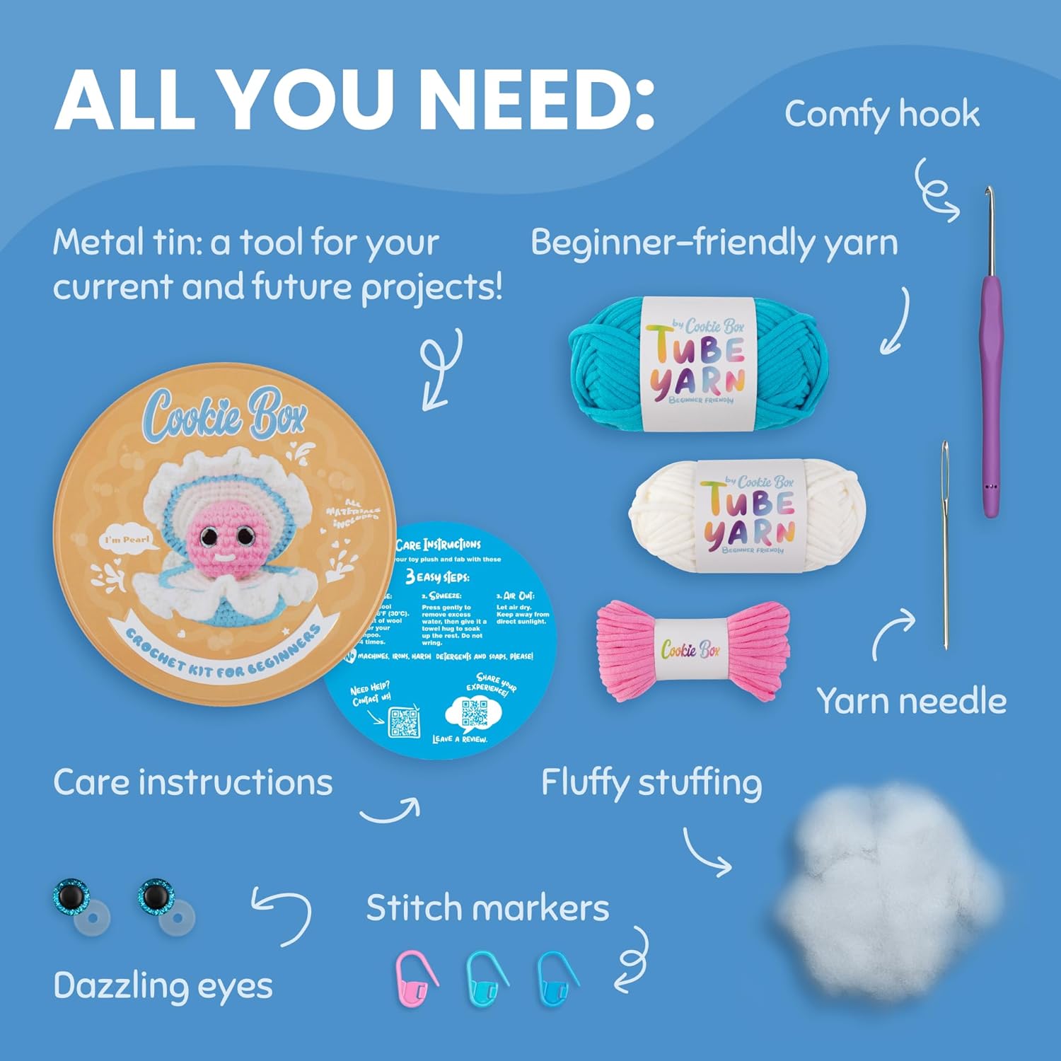 Cookie Box Crochet Kit for Beginners β Gift Set to Make Oyster Pear Amigurumi Plushie β Easy DIY Crochet & Knitting Starter Kit with Video and PDF Tutorials
