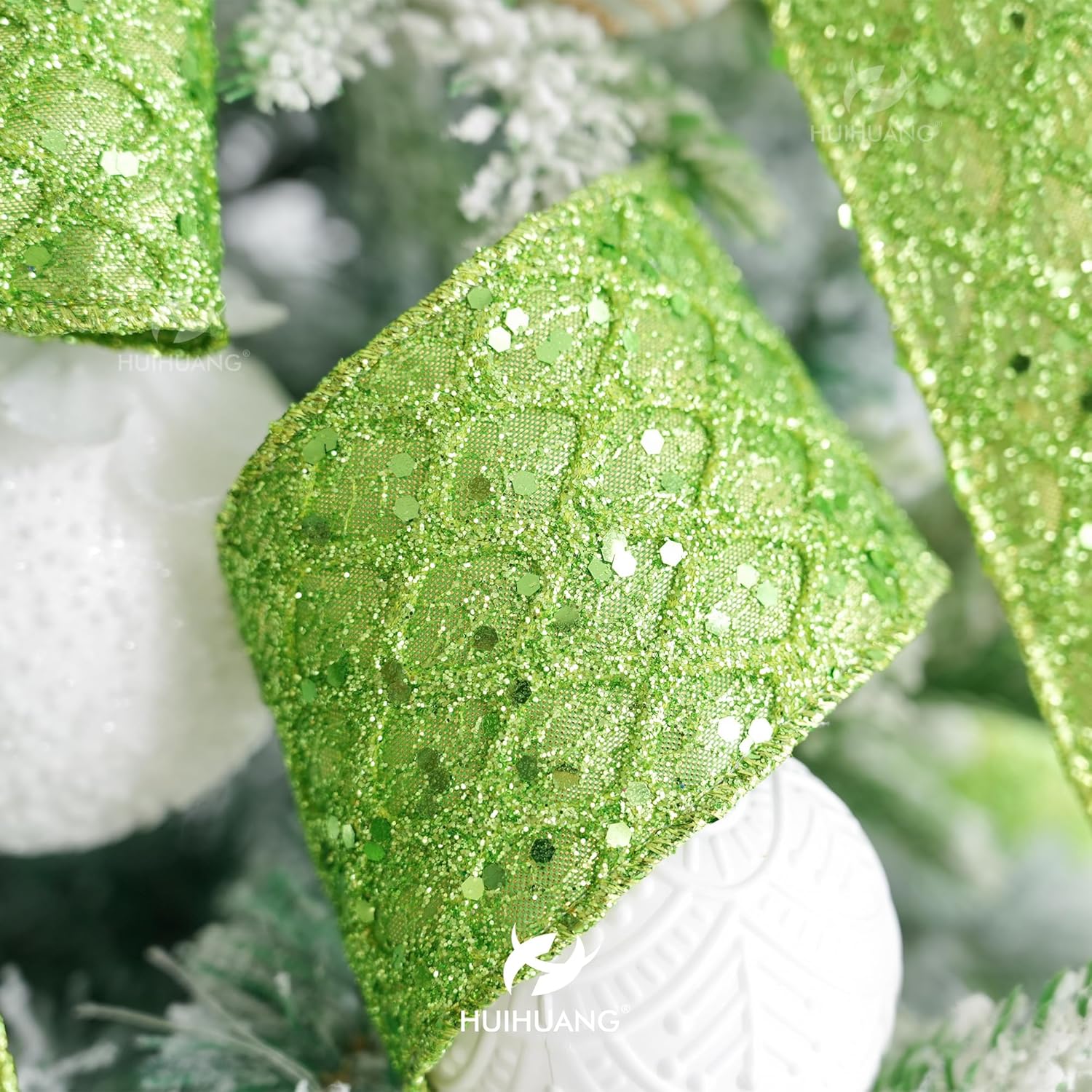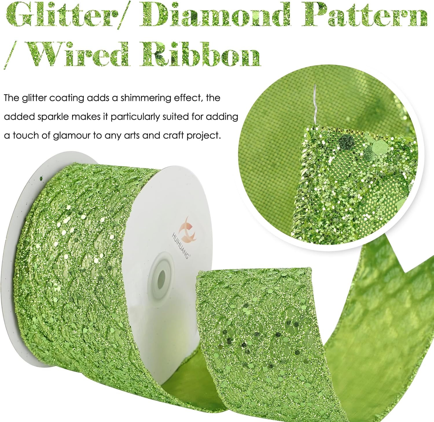 - Color: Lime green glitter wired ribbon brings a bright and beautiful sparkly touchness to your decoration craft ideas and holiday gift wrapping, especially for Christmas tree decorations