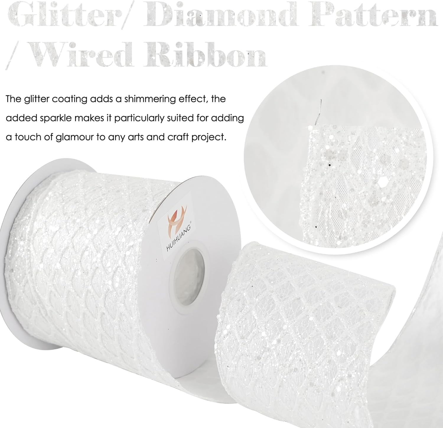 - Color: White glitter wired ribbon brings a bright and beautiful sparkly touchness to your decoration craft ideas and holiday gift wrapping, especially for Christmas tree decorations and more