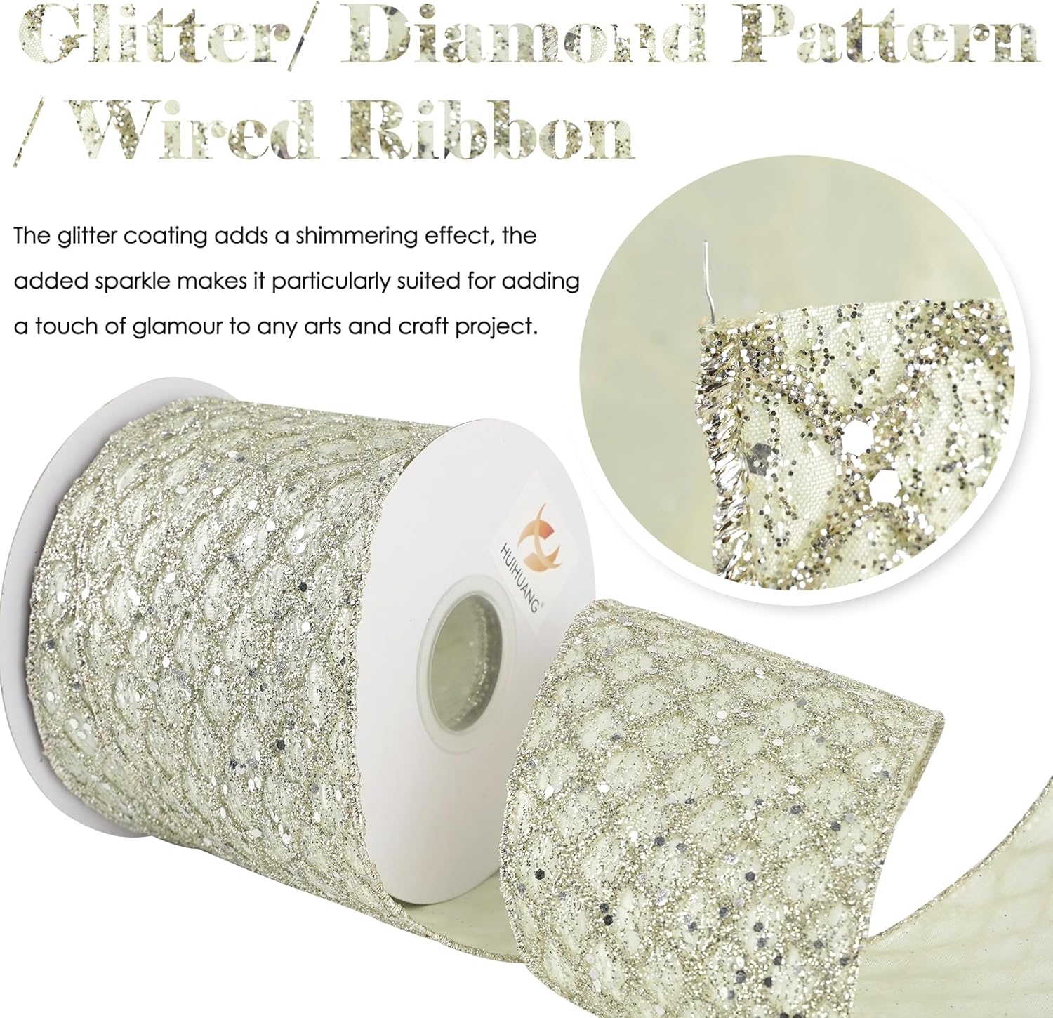 - Size and Package: This wired ribbon measures 4" wide and 10 yards(30 feet ) continuous long each roll, and the glitter diamond-shaped pattern on the wired ribbon adds a shiny and geometric element to Christmas decorations